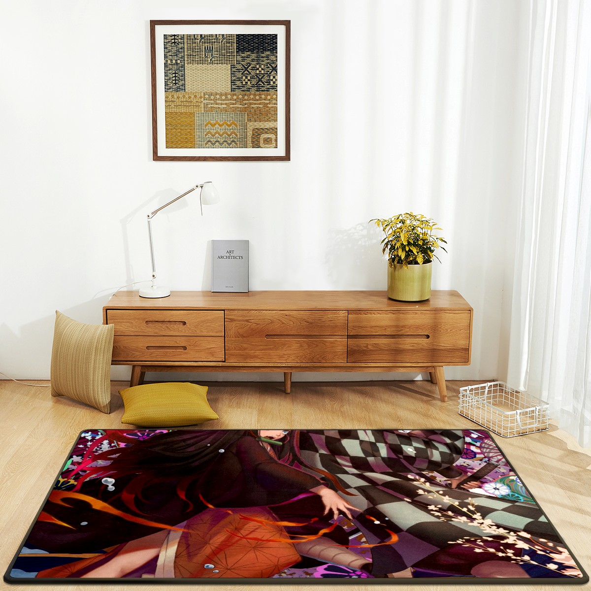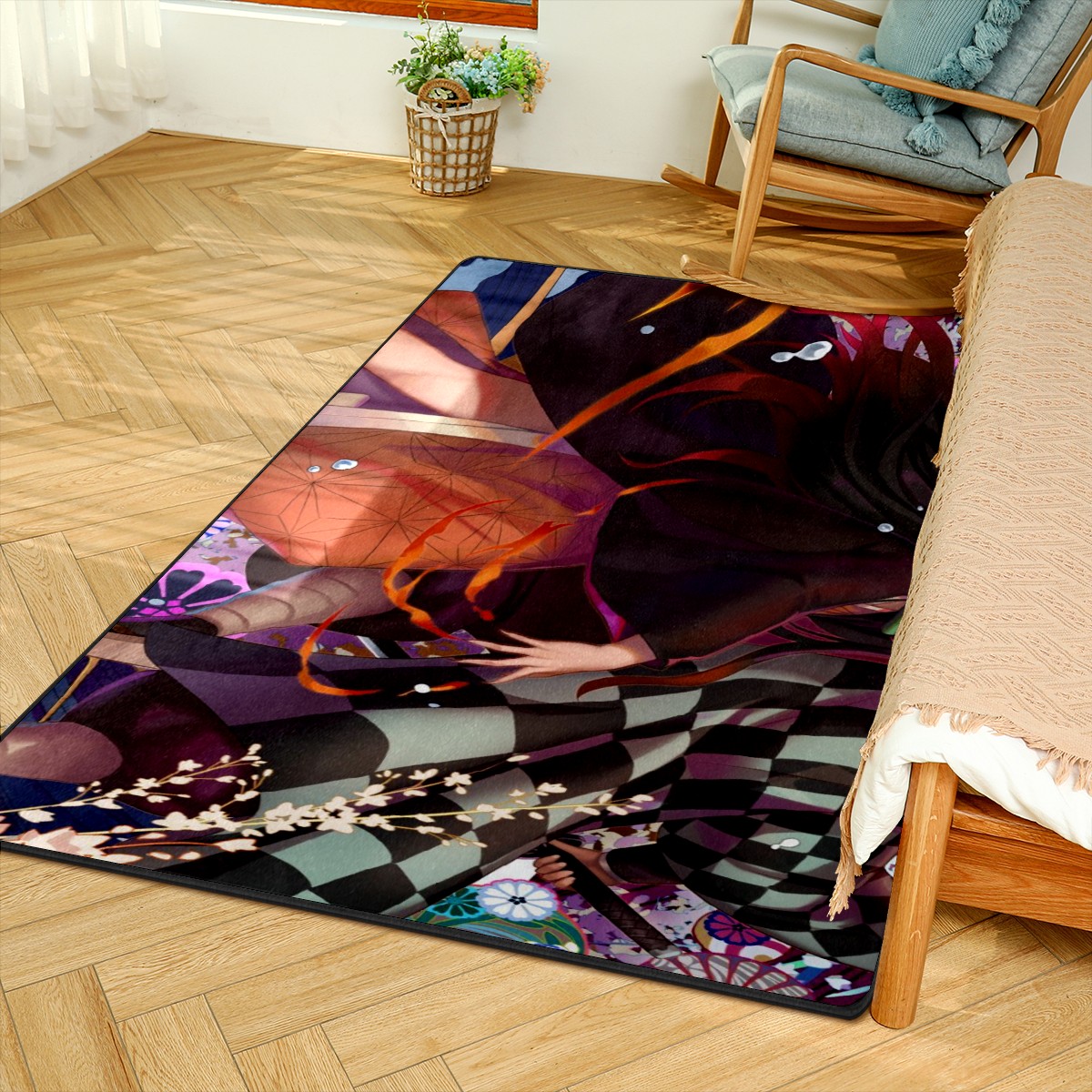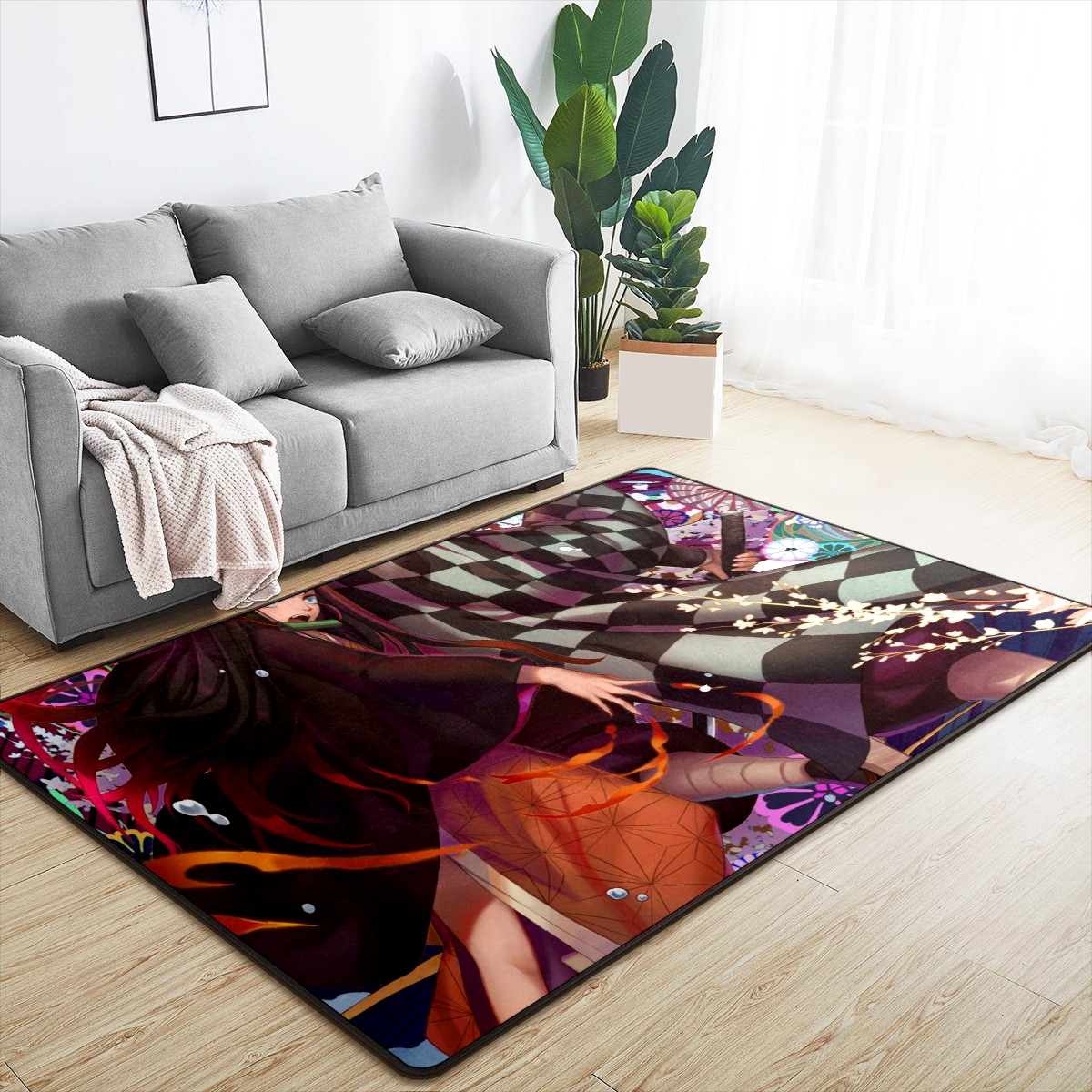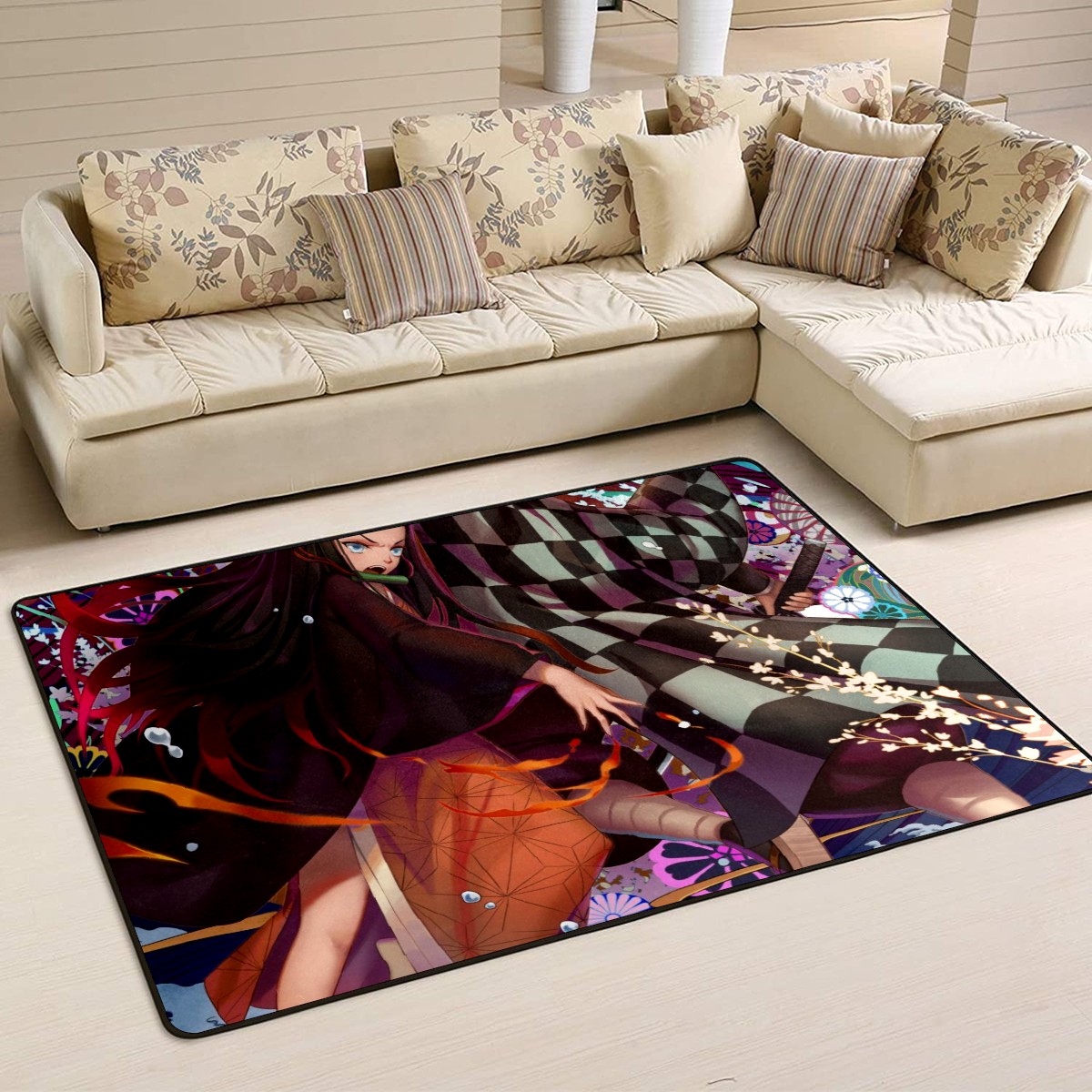 Home Mat Kamado Tanjirou Kamado Nezuko Demon Slayer Indoor Area Rug Livingroom Bedroom Sofa Carpet Non Slip Home Hotel Large Custom Floor Mat 60x39in