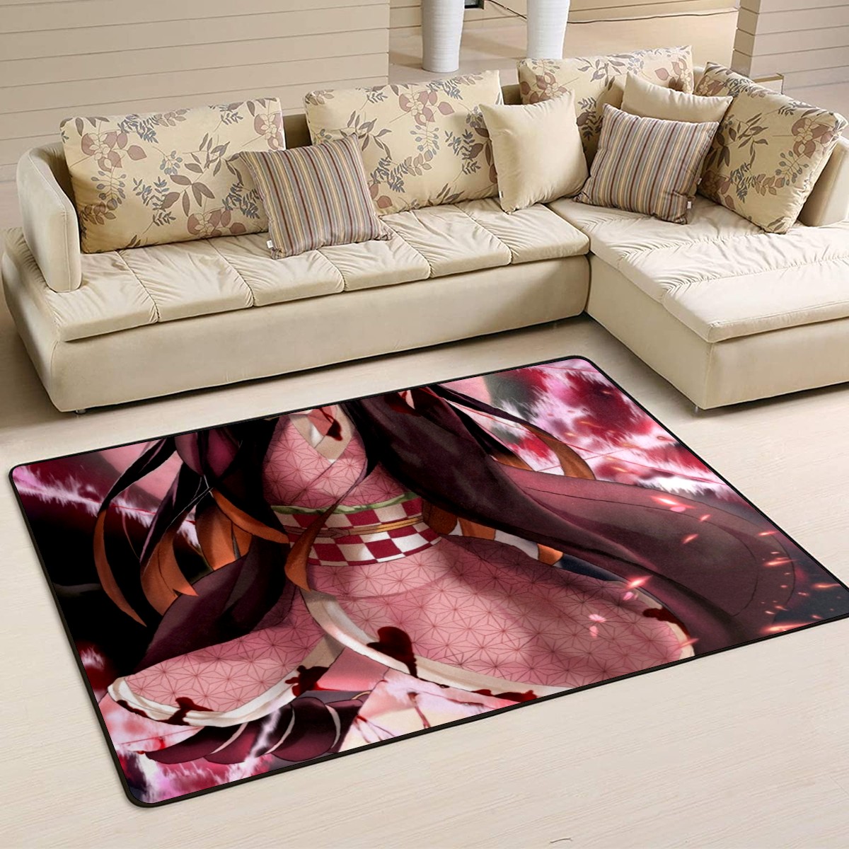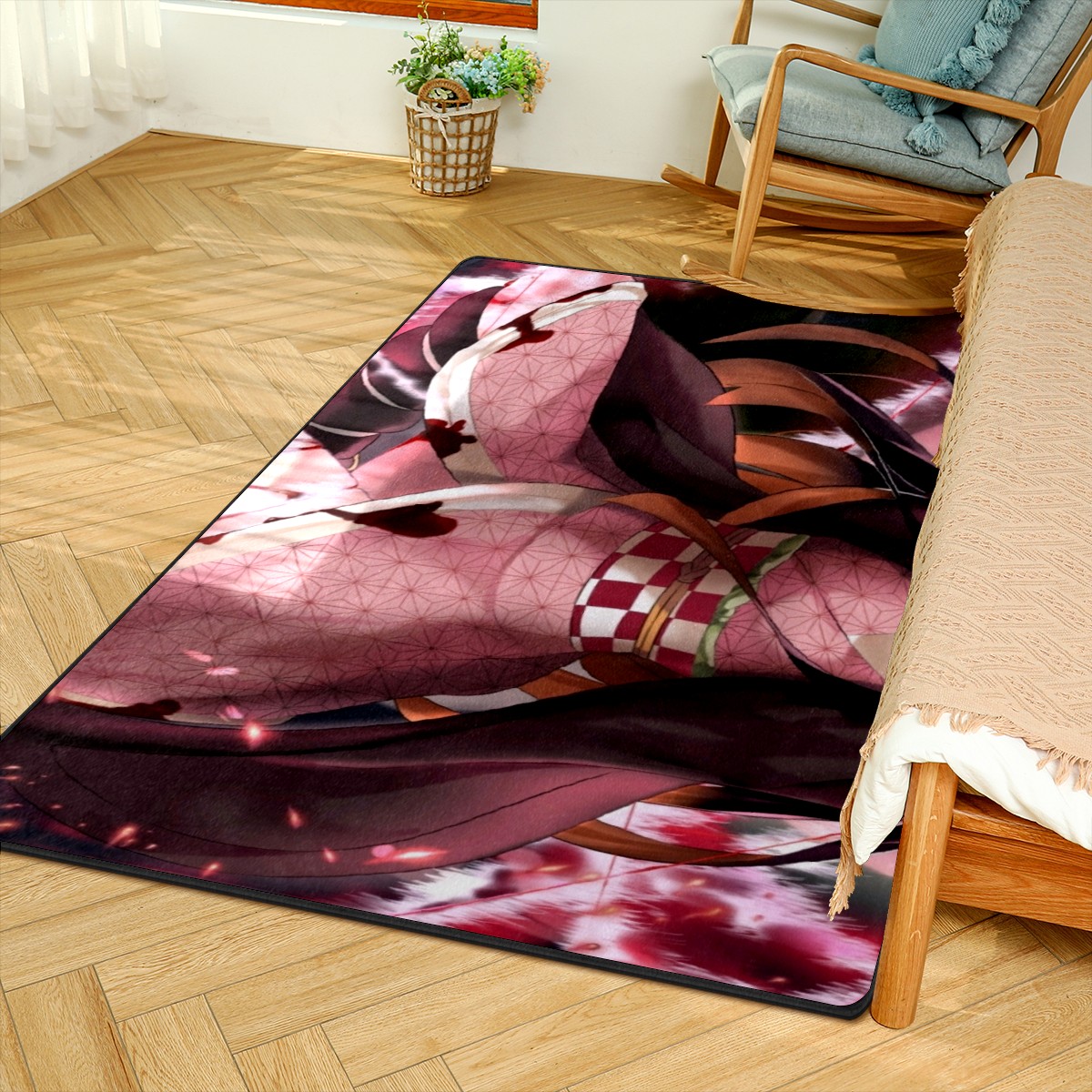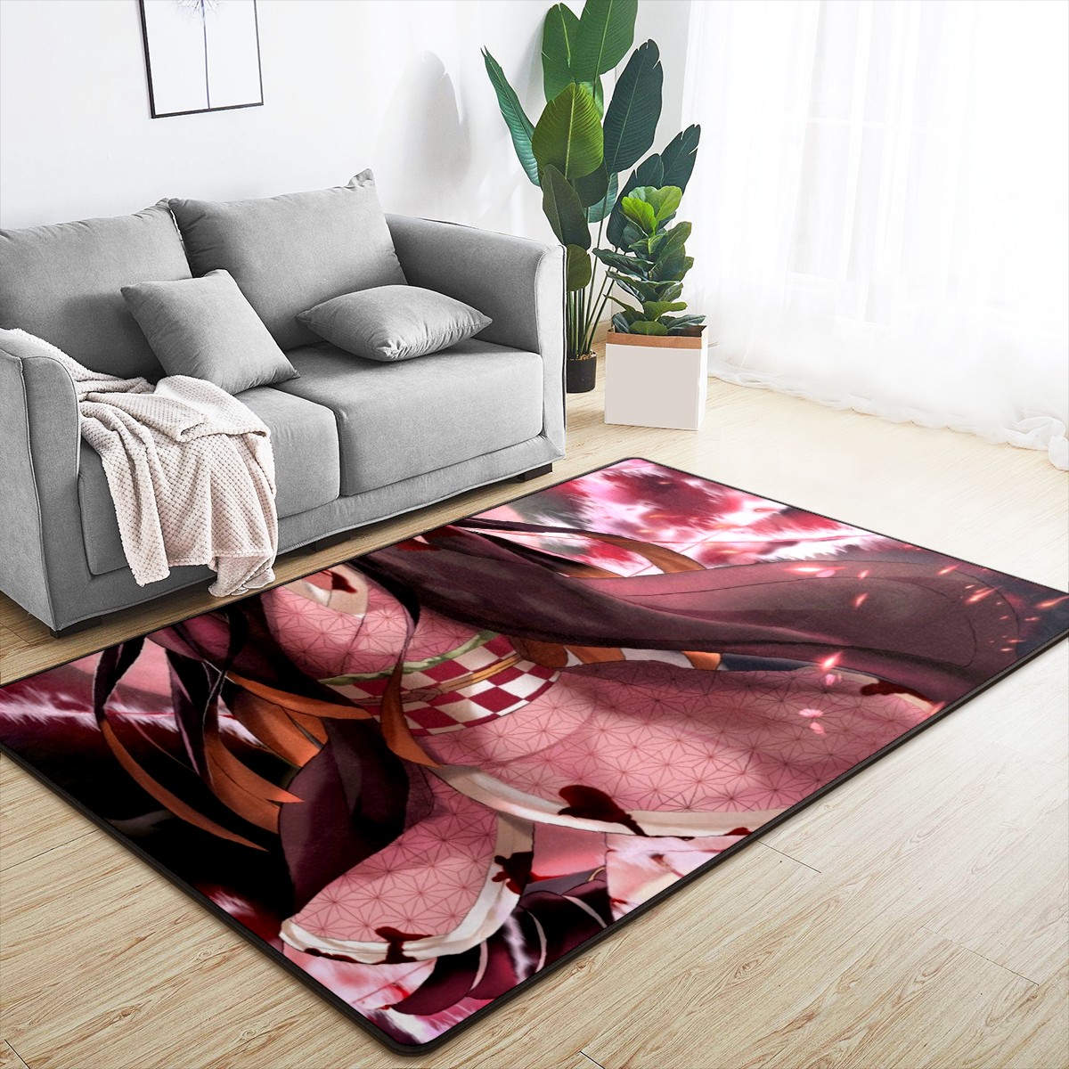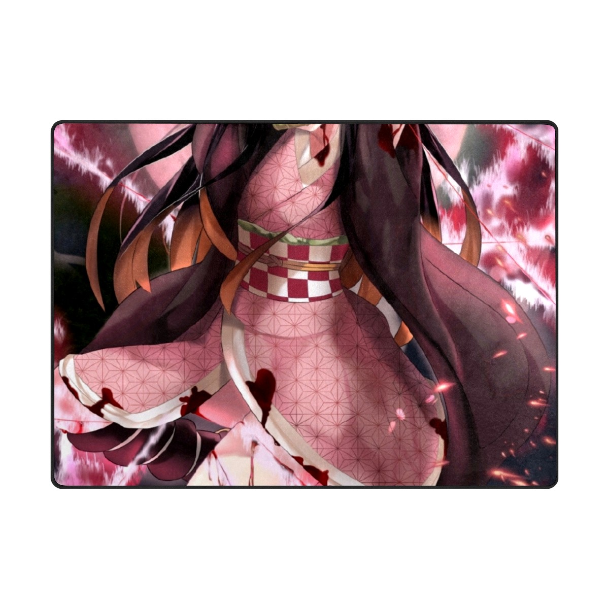 Home Mat Japanese Anime Pink Demon Slayer Kamado Nezuko Indoor Area Rug Livingroom Bedroom Sofa Carpet Non Slip Home Hotel Large Custom Floor Mat 60x39in