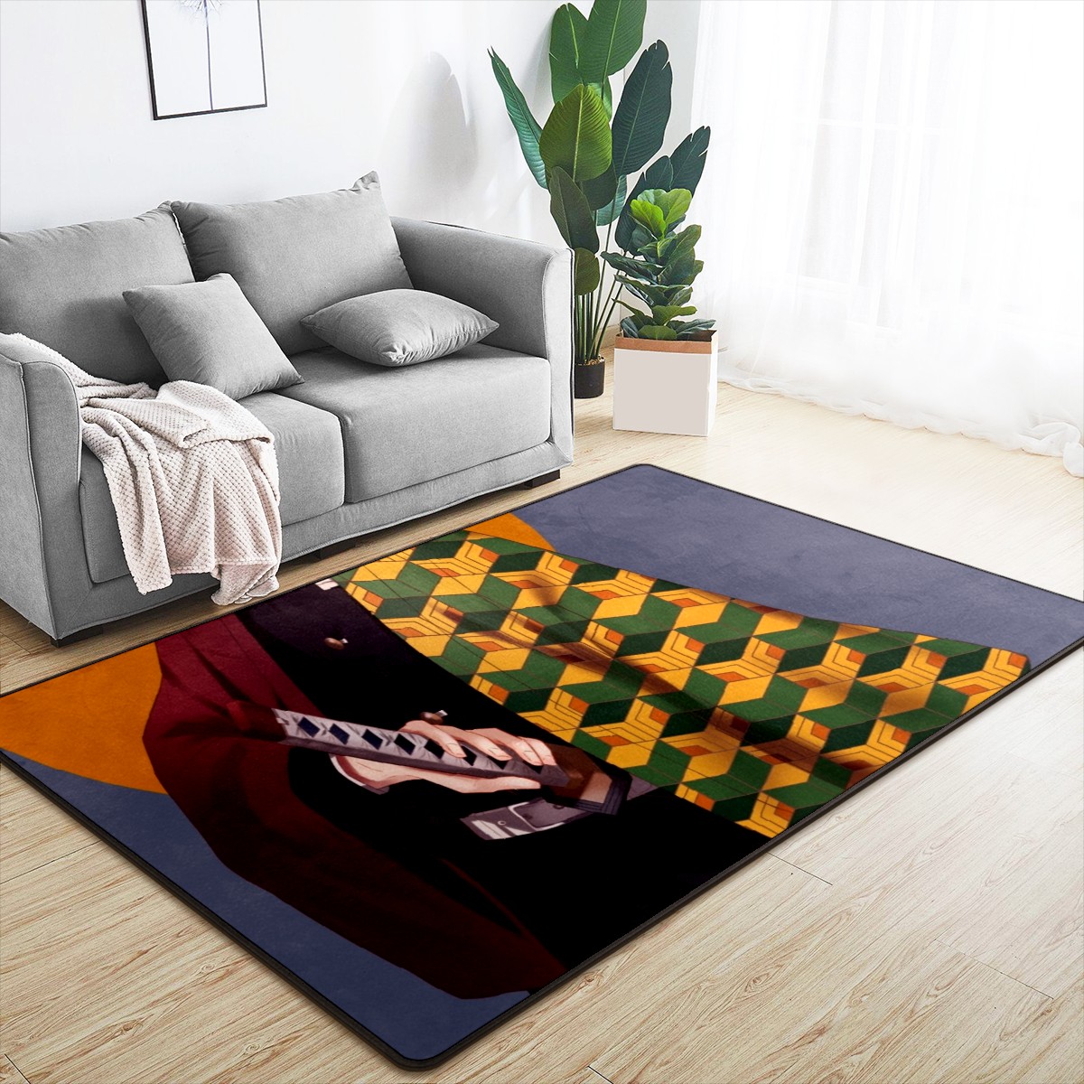 Home Mat Japan Anime Demon Slayer Tomioka Giyuu Indoor Area Rug Livingroom Bedroom Sofa Carpet Non Slip Home Hotel Large Custom Floor Mat 60x39in