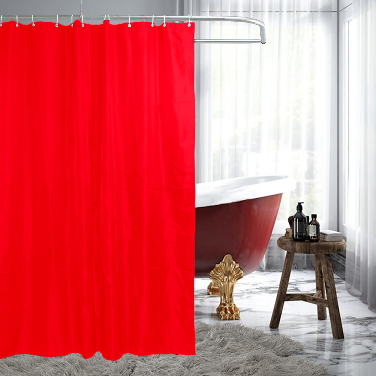 Shower Curtains for Bathroom Red Waterproof Polyester Fabric 60 x 72 inches Home Decor Bathroom Curtains for Kids Girls Boys with 12 Hooks