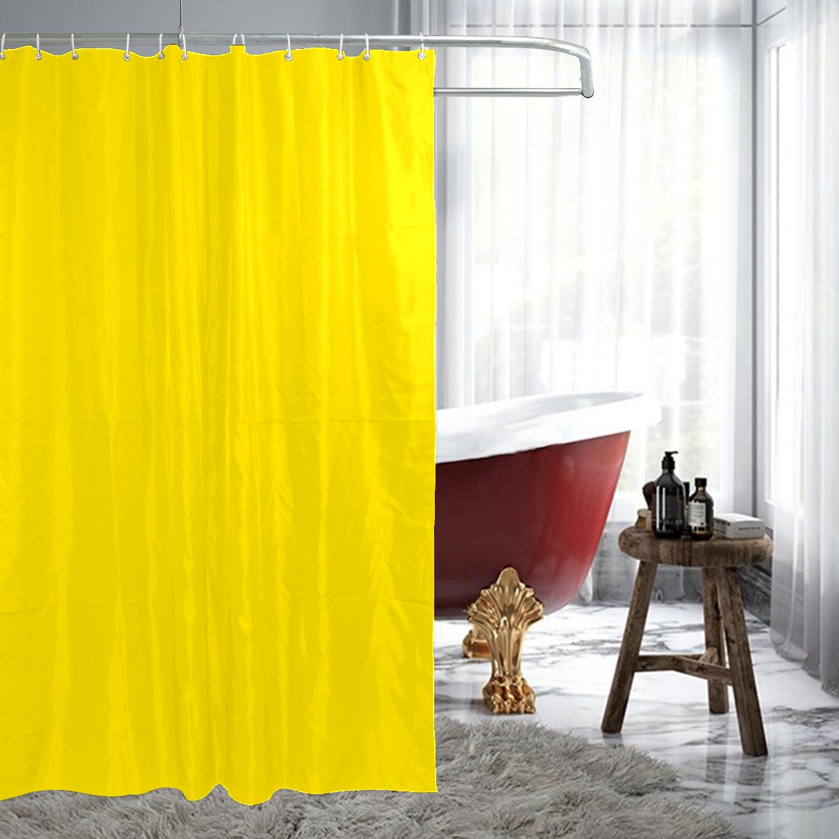 Shower Curtains for Bathroom Lemon Yellow Waterproof Polyester Fabric 60 x 72 inches Home Decor Bathroom Curtains for Kids Girls Boys with 12 Hooks