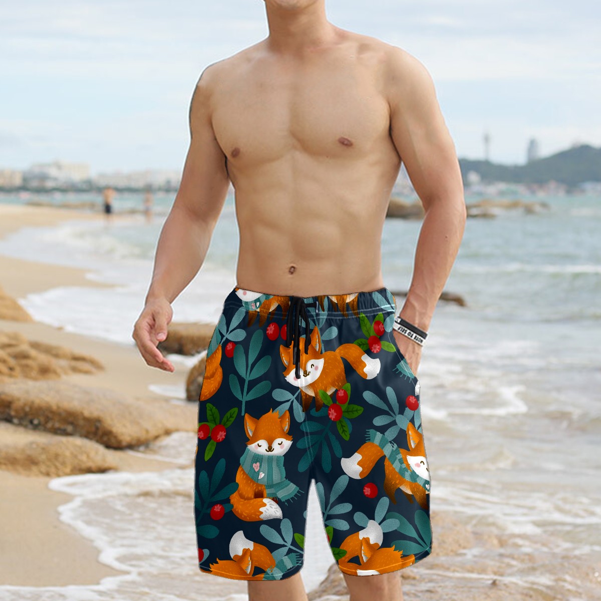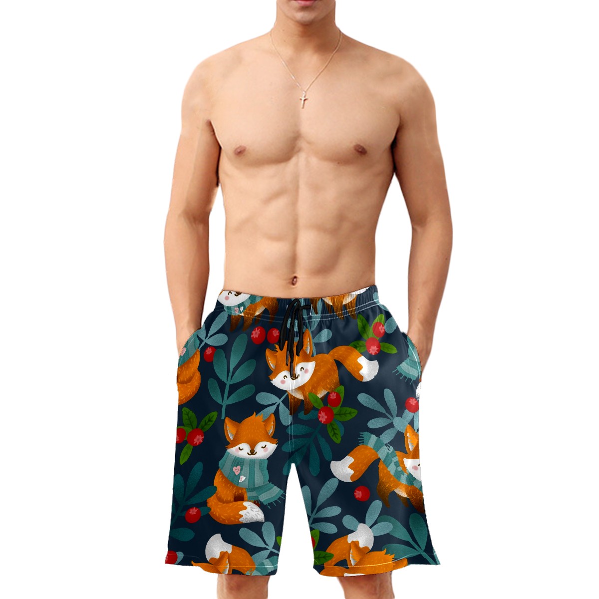 Men's Swim Trunks Fox And Leaves Beach Shorts Quick Dry Surf Athletic Shorts