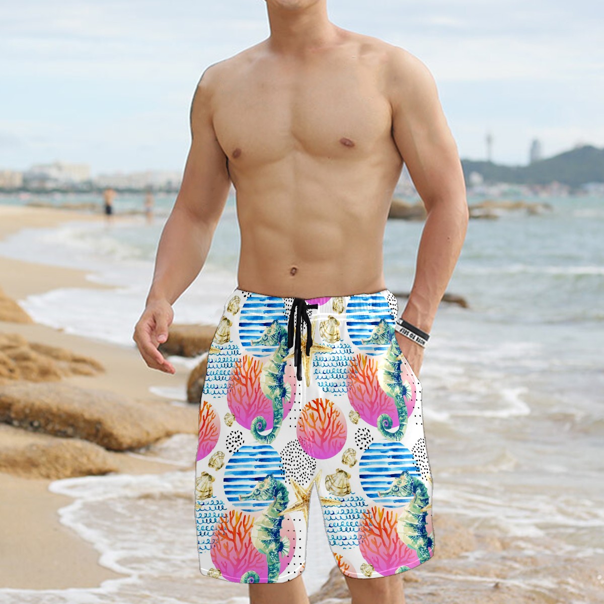 Men's Swim Trunks Watercolor Seahorse Beach Shorts Quick Dry Surf Athletic Shorts