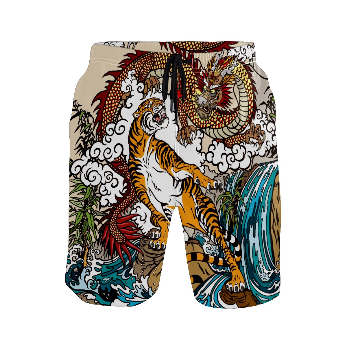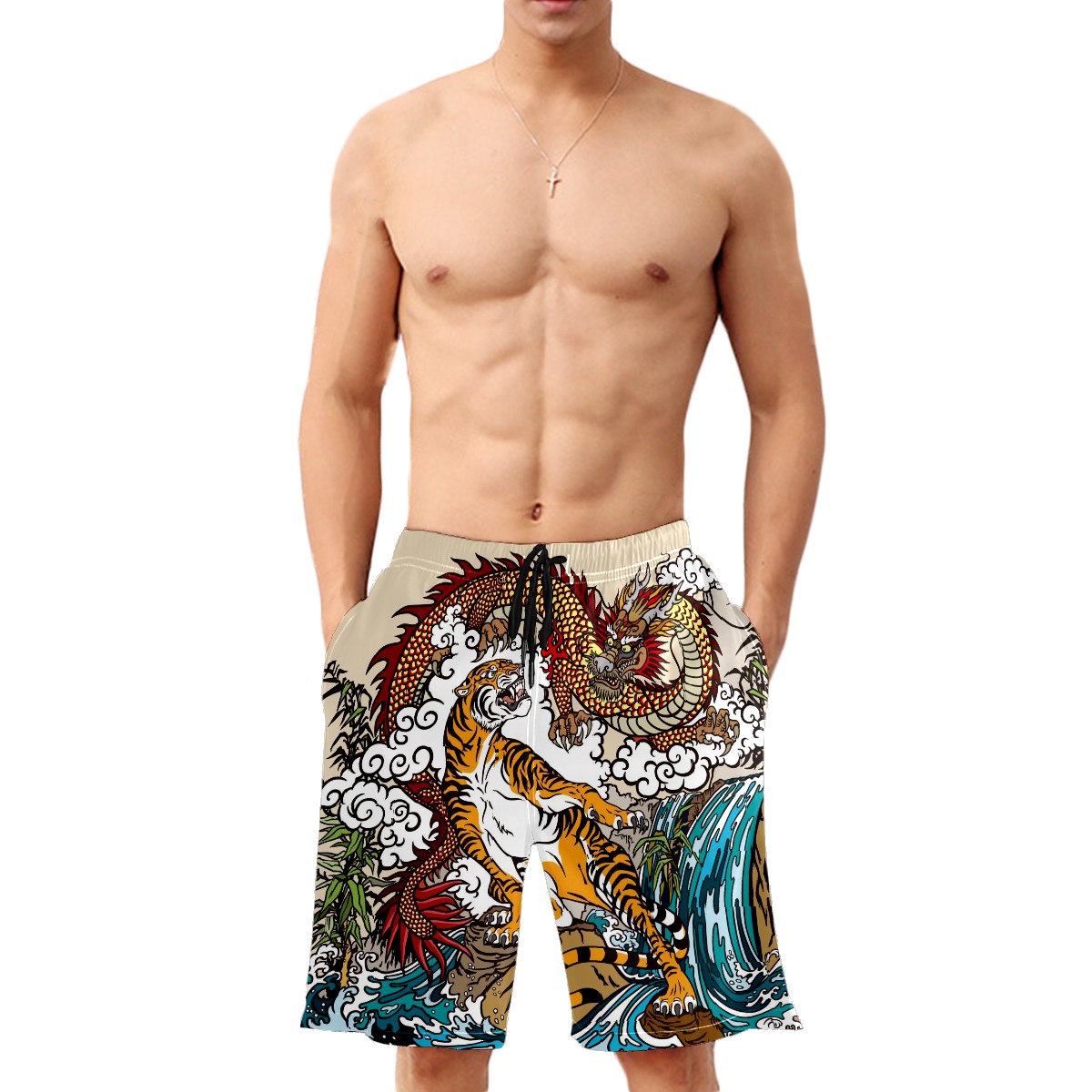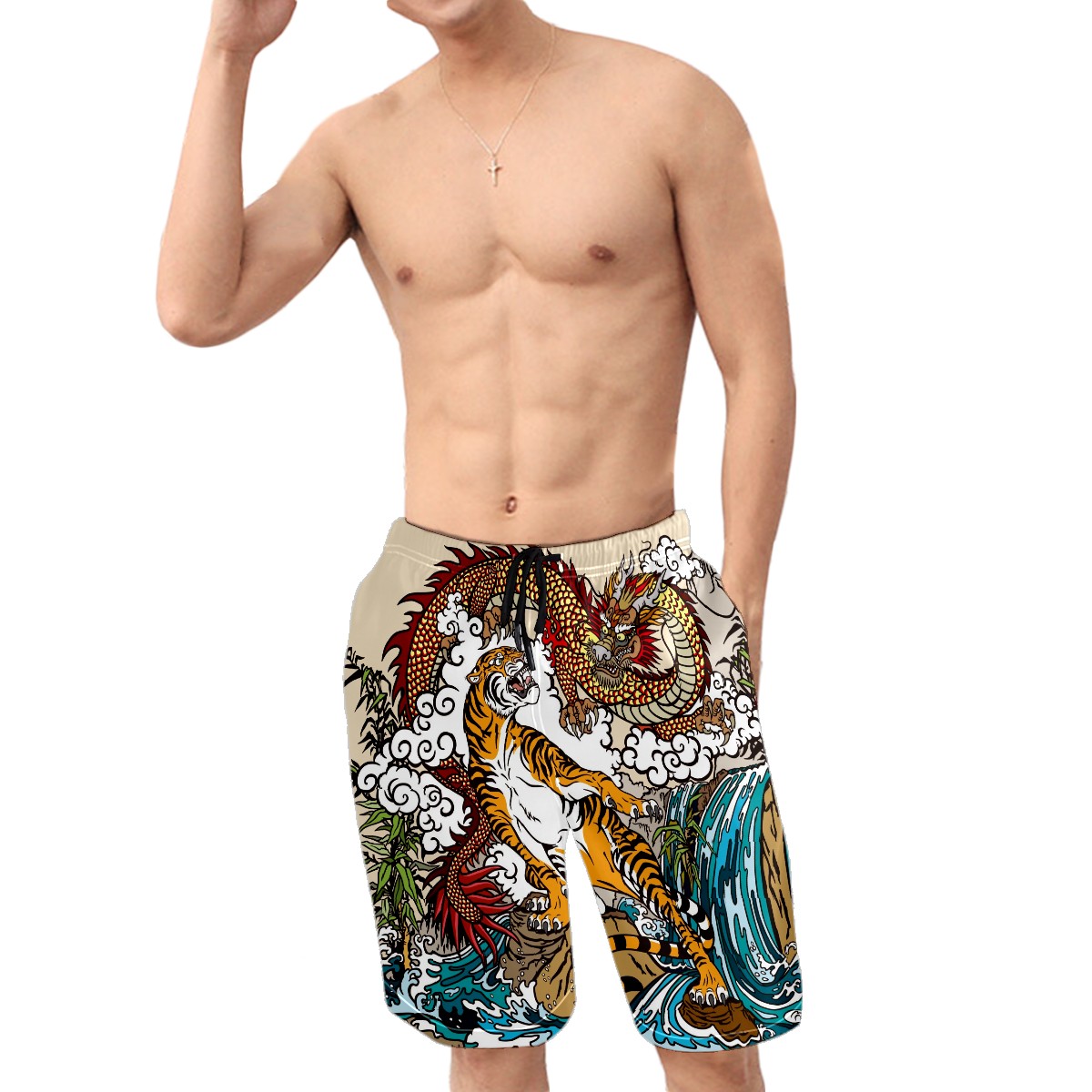 Men's Swim Trunks Dragon And Tiger Beach Shorts Quick Dry Surf Athletic Shorts