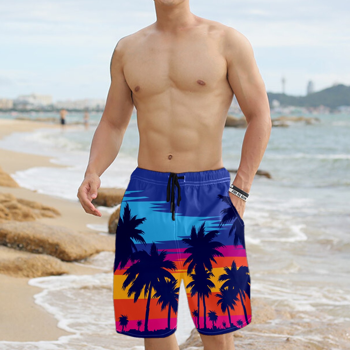 Men's Swim Trunks Coconut Tree Beach Shorts Quick Dry Surf Athletic Shorts