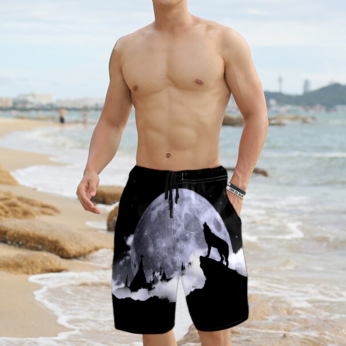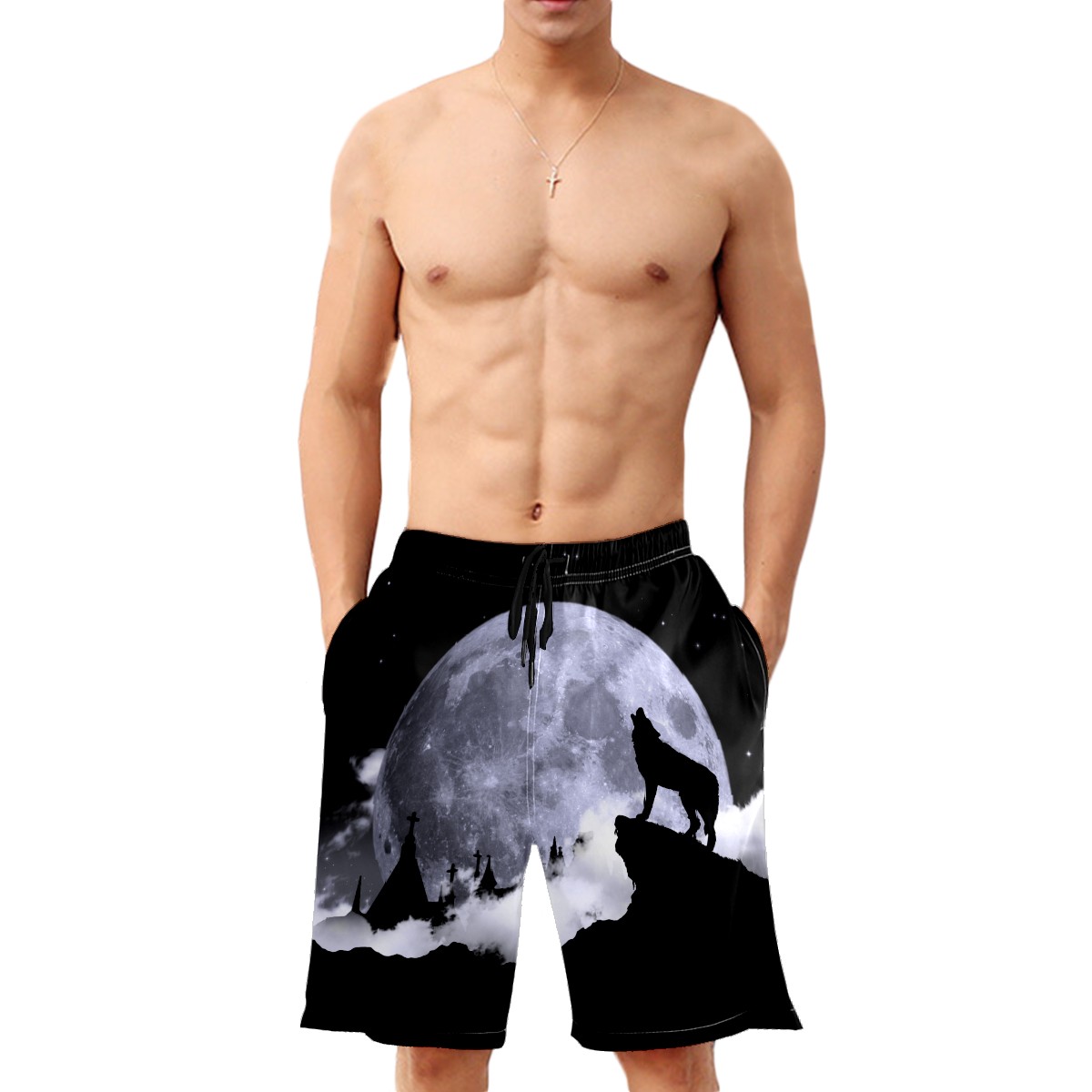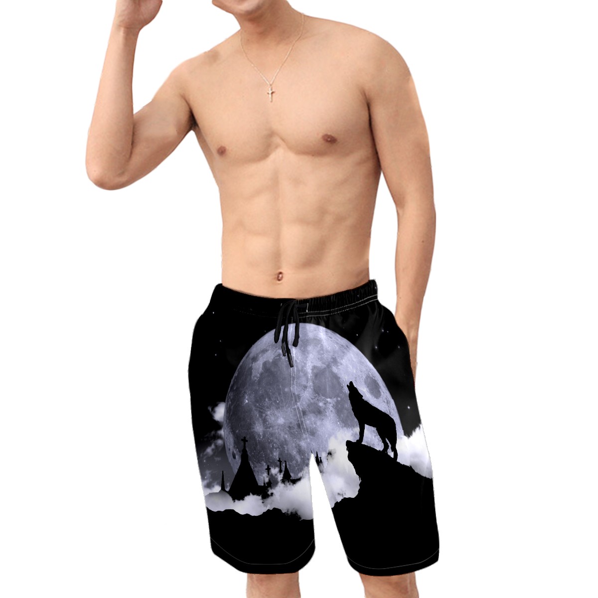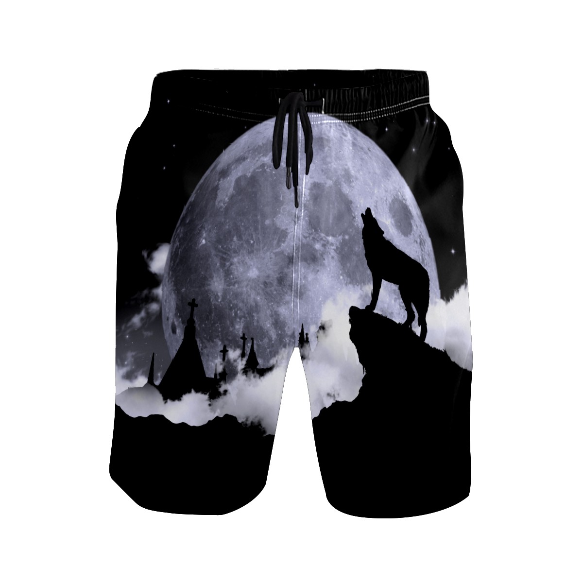 Men's Swim Trunks Lone Wolf Howling Moon Beach Shorts Quick Dry Surf Athletic Shorts