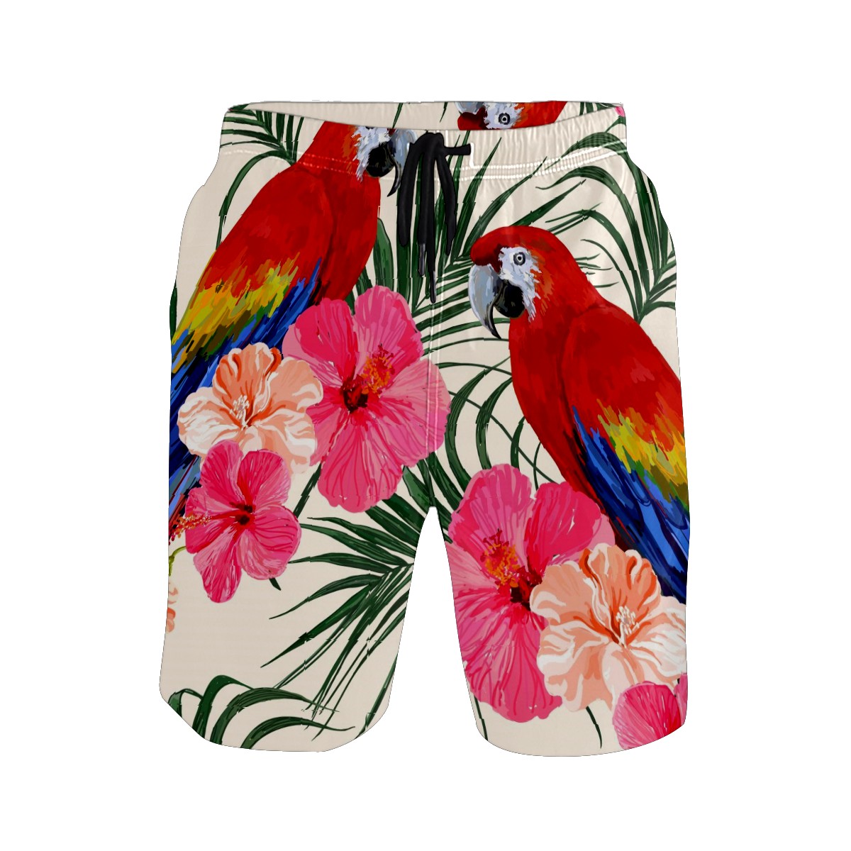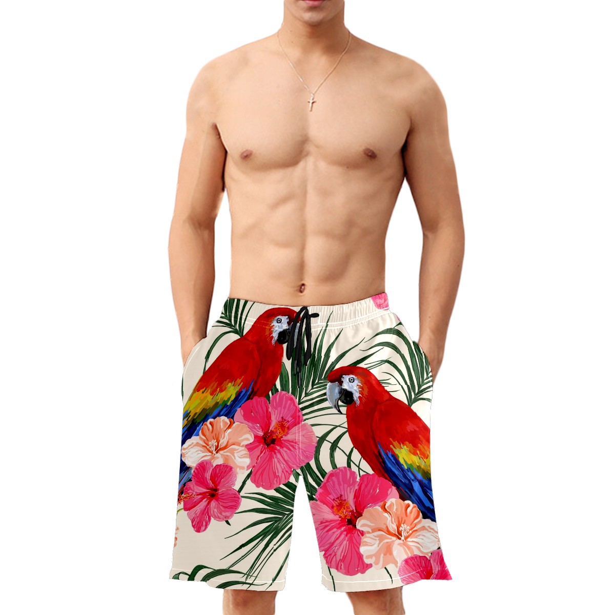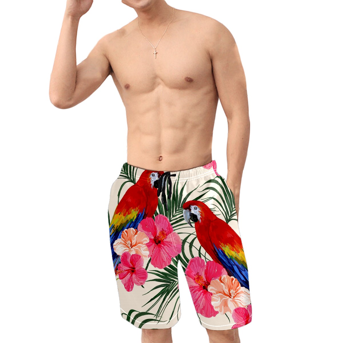 Men's Swim Trunks Parrot And Floral Beach Shorts Quick Dry Surf Athletic Shorts