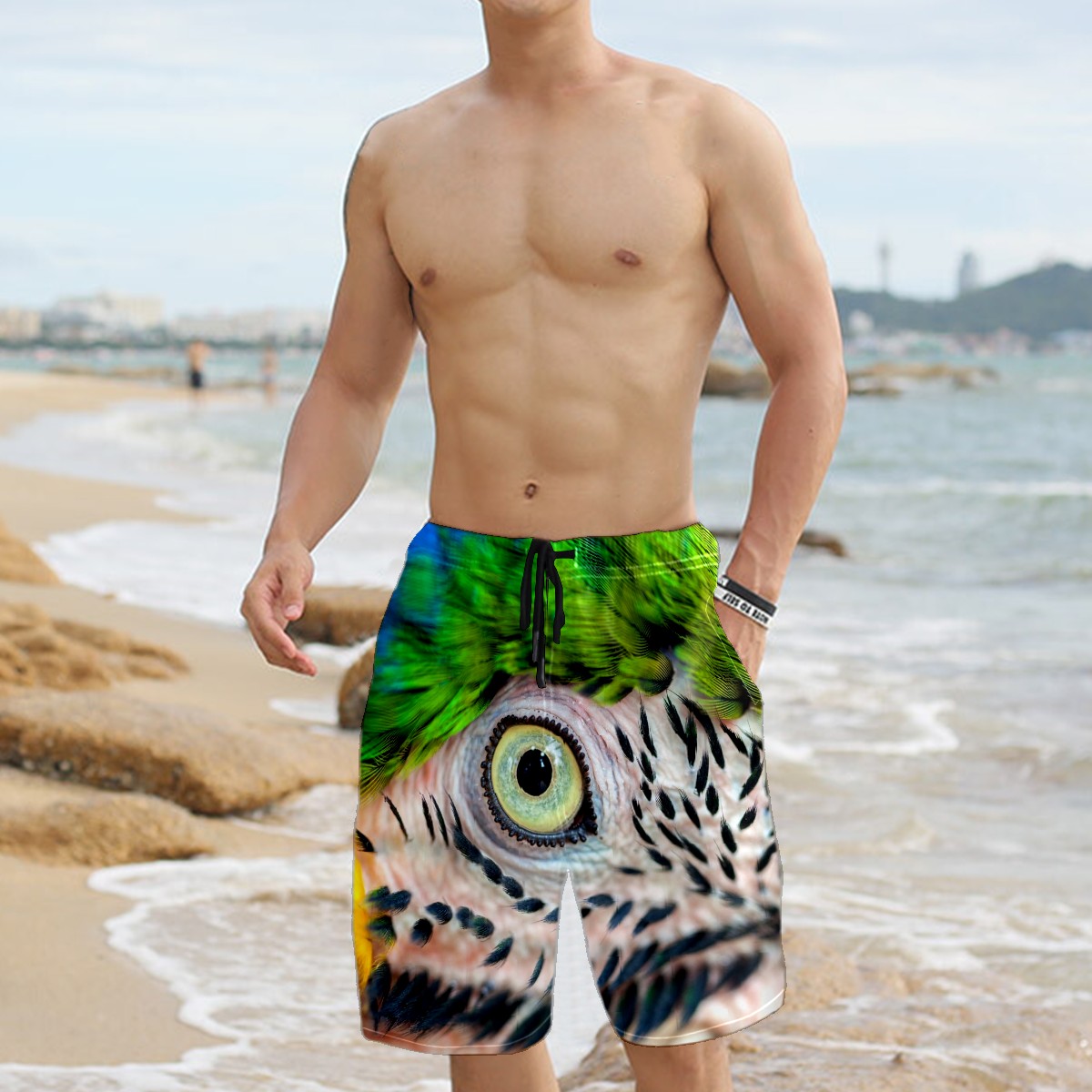 Men's Swim Trunks Parrot Eye Close-up Beach Shorts Quick Dry Surf Athletic Shorts