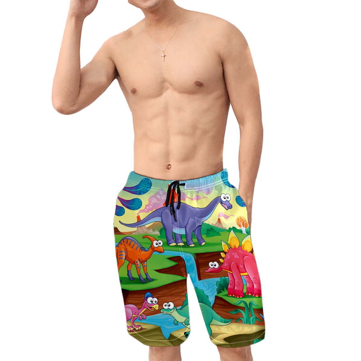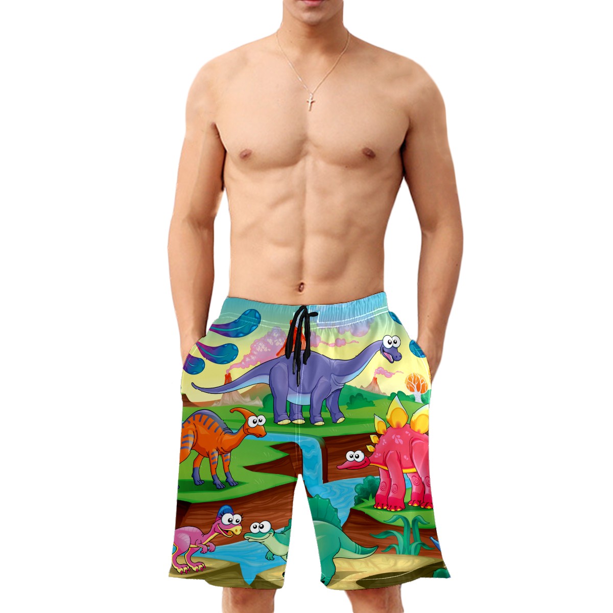 Men's Swim Trunks Dinosaur Beach Shorts Quick Dry Surf Athletic Shorts