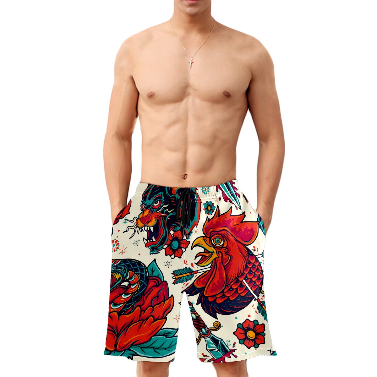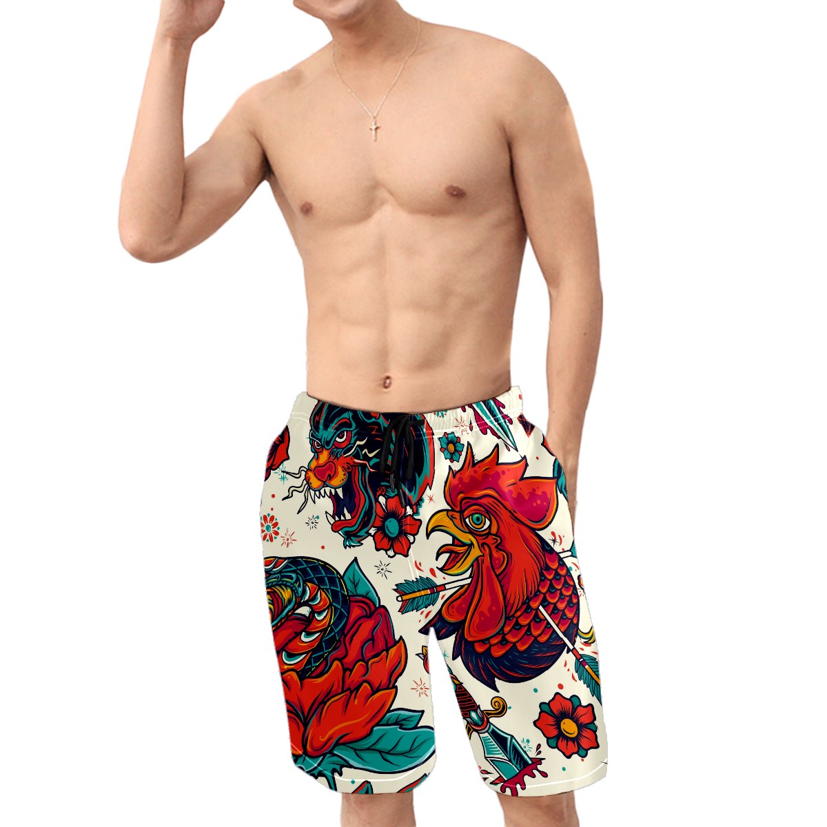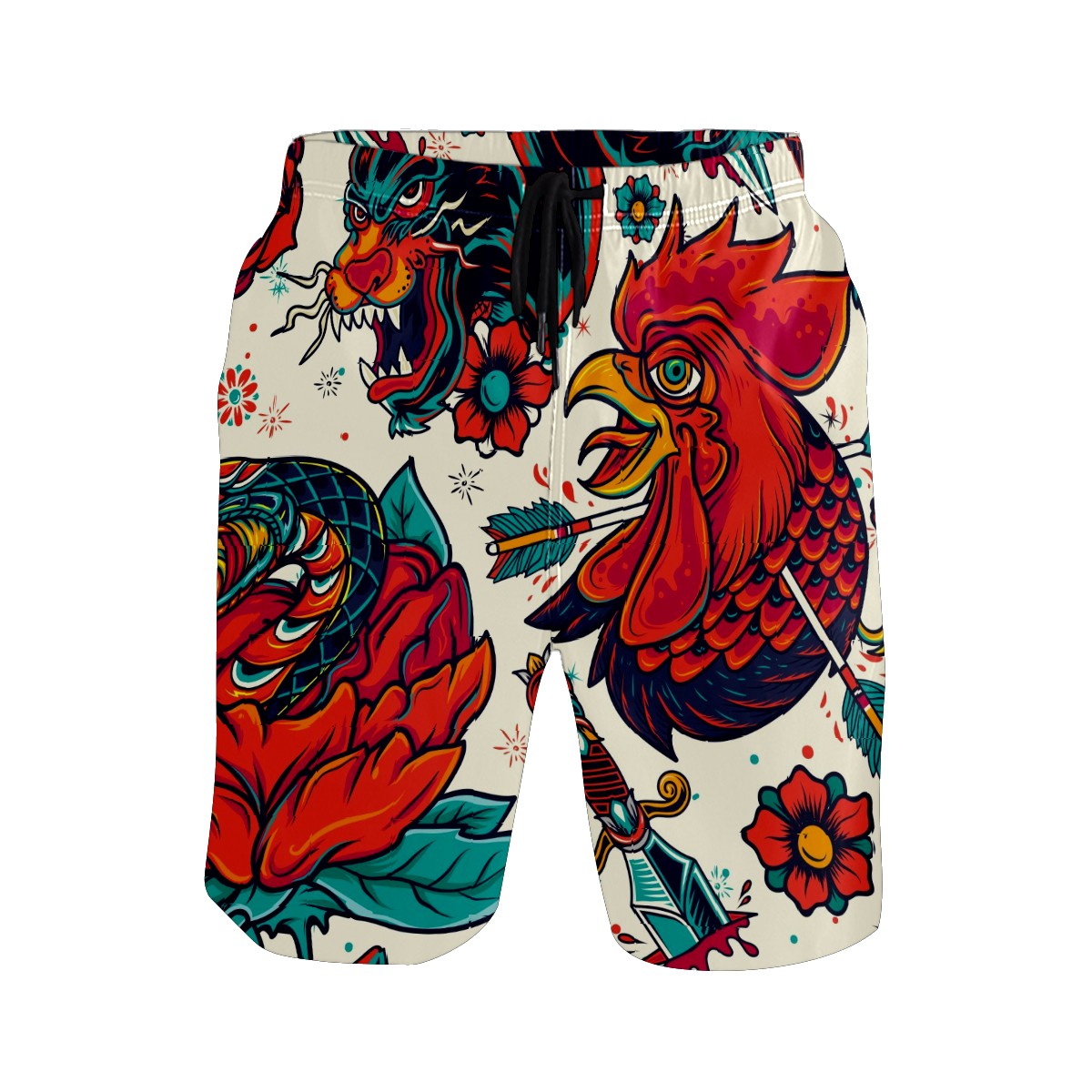 Men's Swim Trunks Cock And Tiger Beach Shorts Quick Dry Surf Athletic Shorts