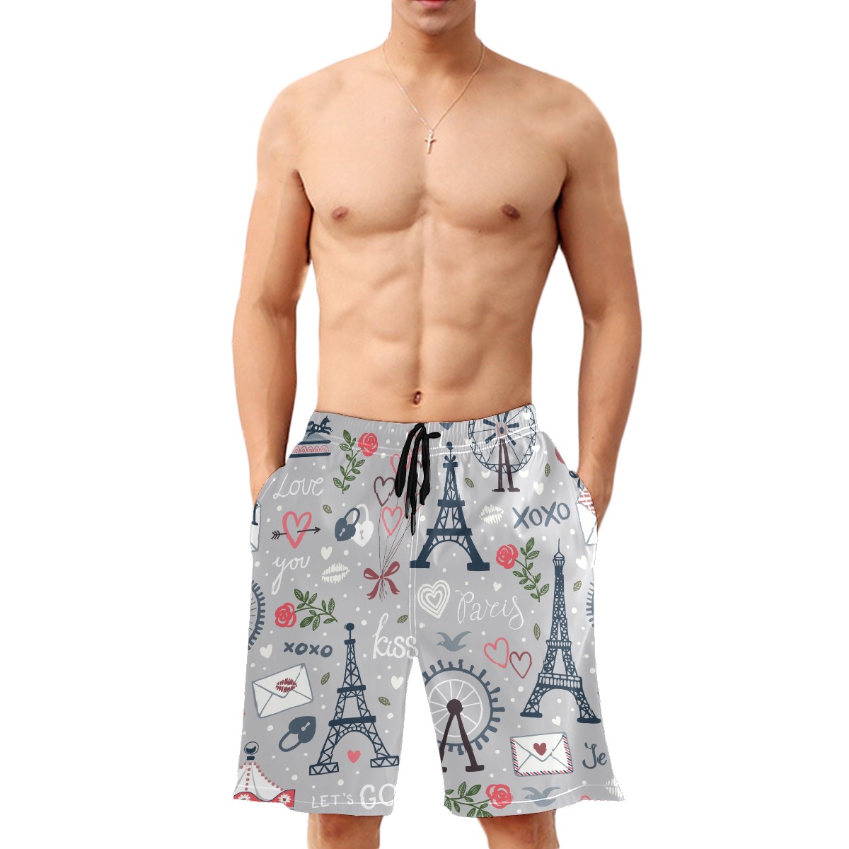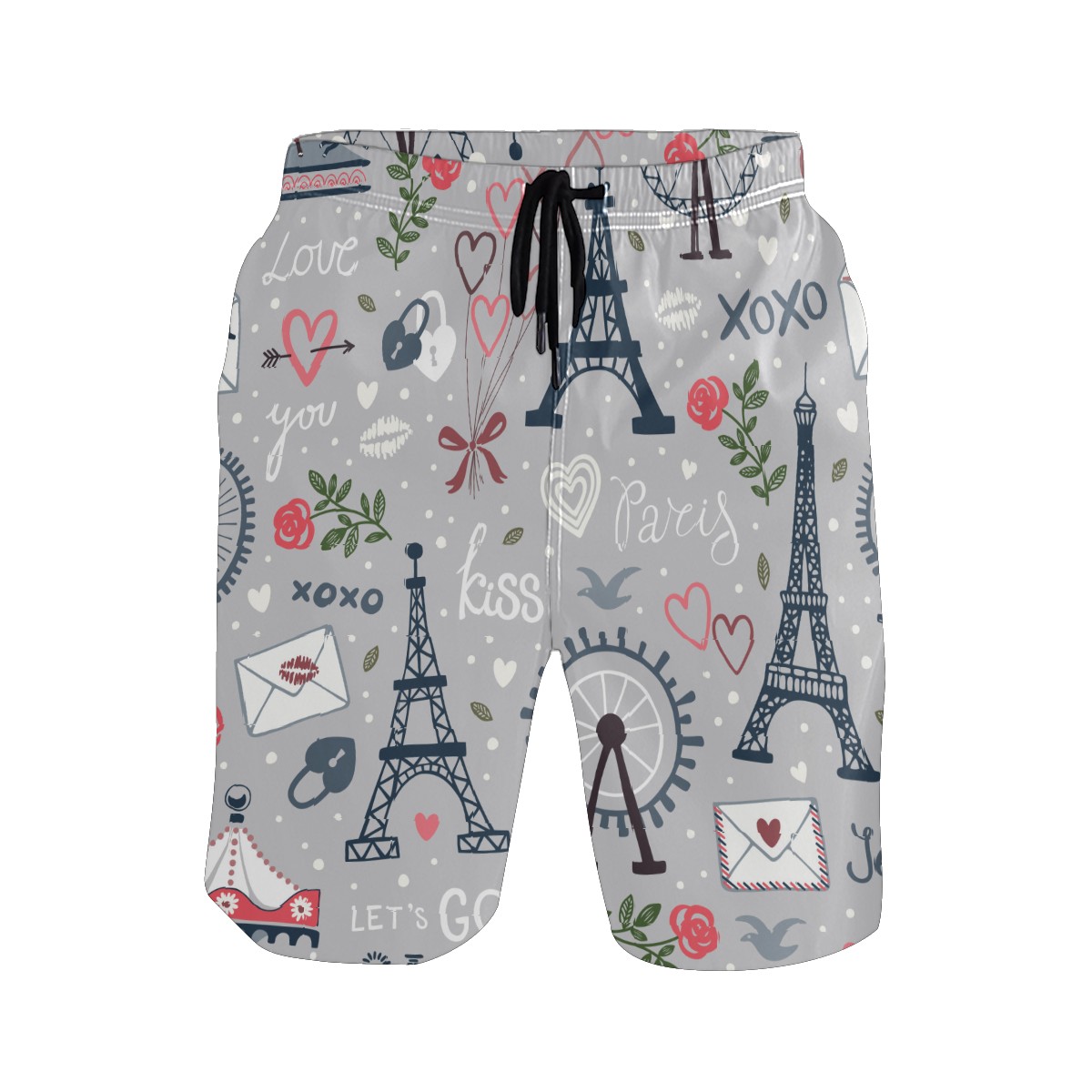Men's Swim Trunks Eiffel Tower Envelope Beach Shorts Quick Dry Surf Athletic Shorts