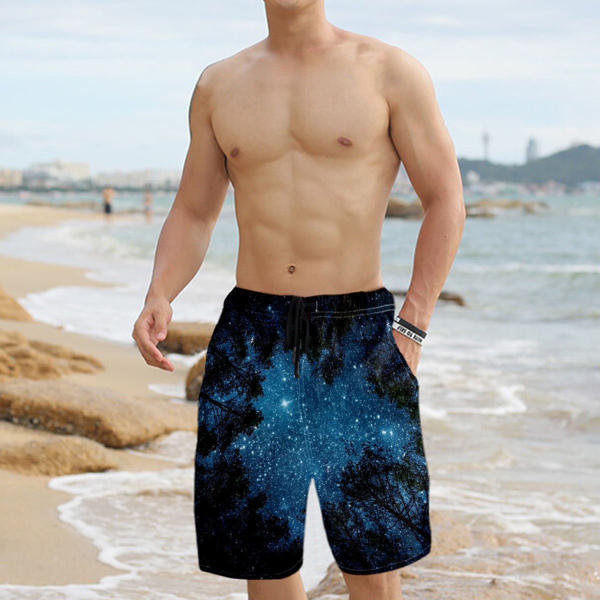 Men's Swim Trunks Forest Starry Sky Beach Shorts Quick Dry Surf Athletic Shorts