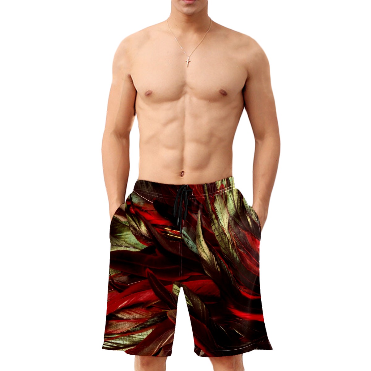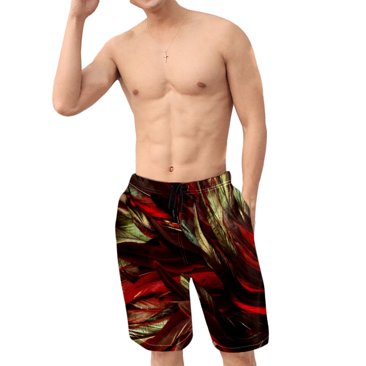 Men's Swim Trunks Rooster Feather Beach Shorts Quick Dry Surf Athletic Shorts