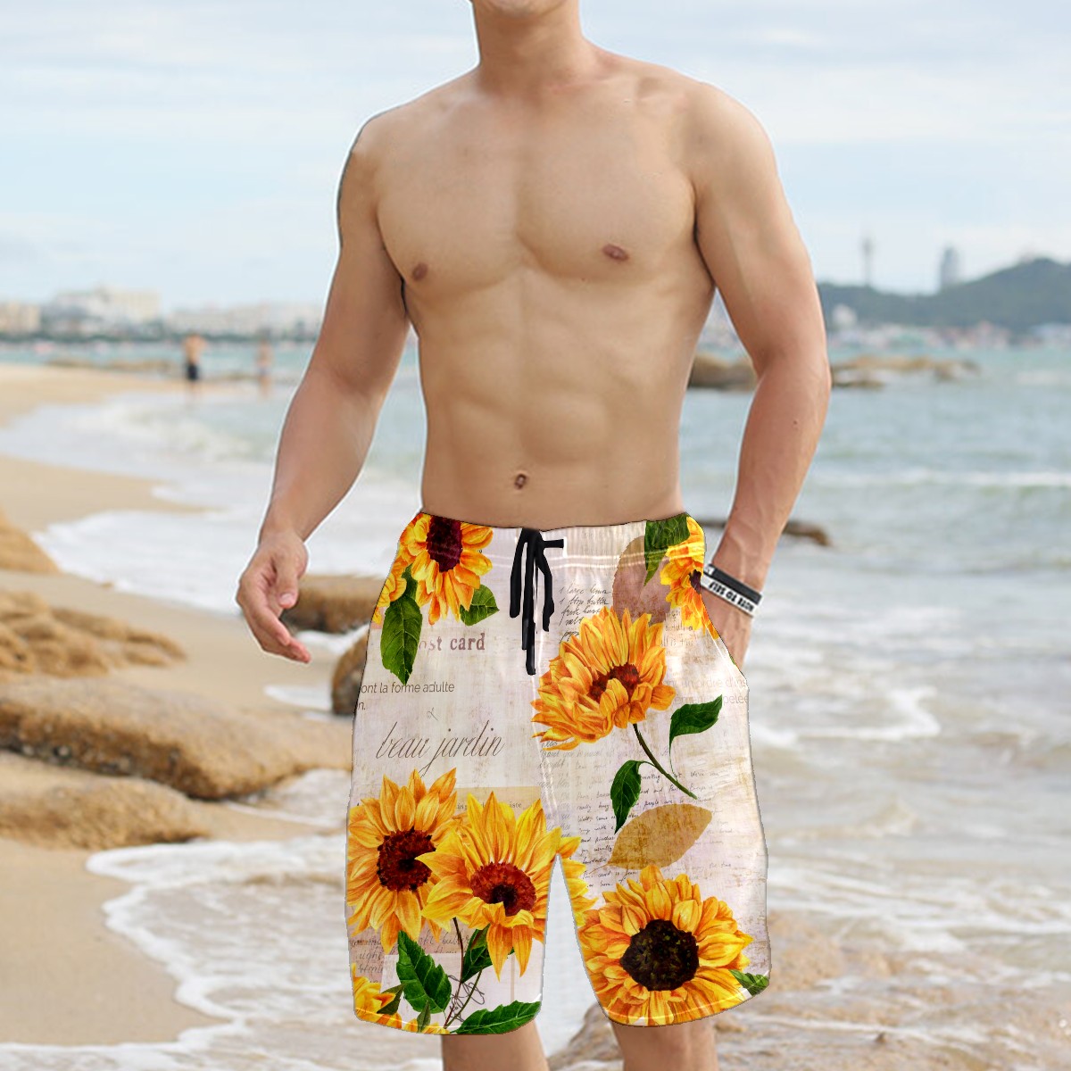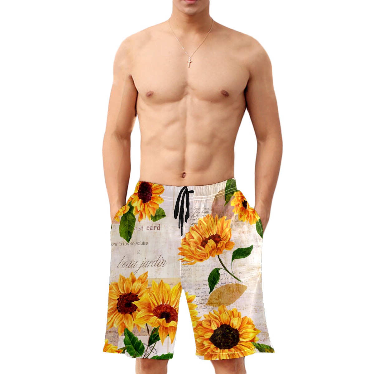 Men's Swim Trunks Sunflower And Envelope Beach Shorts Quick Dry Surf Athletic Shorts