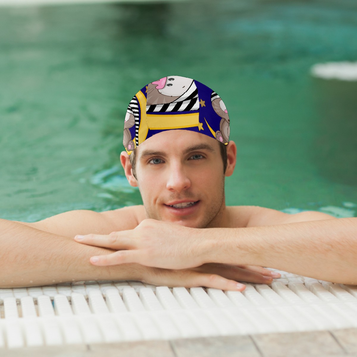 <p><b>Swimming Cap Hat Bathing Shower Hair Cover for Adult Men Women Youth Girls Boys</b></p><p><b>Material:&nbsp;</b><span style="color: rgb(51, 51, 51); font-size: 16px;">88% polyester,</span>12% spandex,&nbsp;</p><p><b>Size:</b>&nbsp;10 x 7.87 Inch (Cap height 7.87 inch, Cap stitching width 10 inch)</p><p><b>Weight:</b>&nbsp;20g</p><p><b>Product Feature:&nbsp;</b></p><p>-Swim cap design keeps hair&amp;ears dry, protecting your hair. This swimming cap is easier to put on and off than the silicone cap.It has a durable and elastic surface,and Anti-slip design</p><p>-Tie your hair up and put it into the swim cap gently, this swimming cap provide great fit for adults no matter you hair is long, short,thick or curly, the swim cap can totally wrap your hair and prevent water</p><p>-Fashionable print swim caps suitable for recreational non-professional swimming personnel, for adults and teenagers to wear</p><p><b>If you have any questions, please contact us.</b></p>