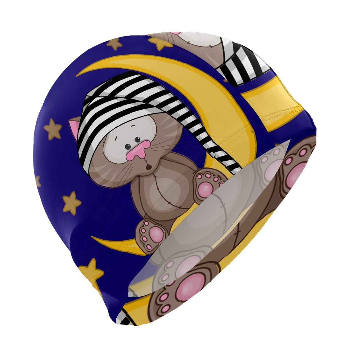 Swim Caps Funny Cat With Hat Sitting On Moon Stars Night Swimming Cap Hat Bathing Shower Hair Cover for Adult Men Women Girls Boys
