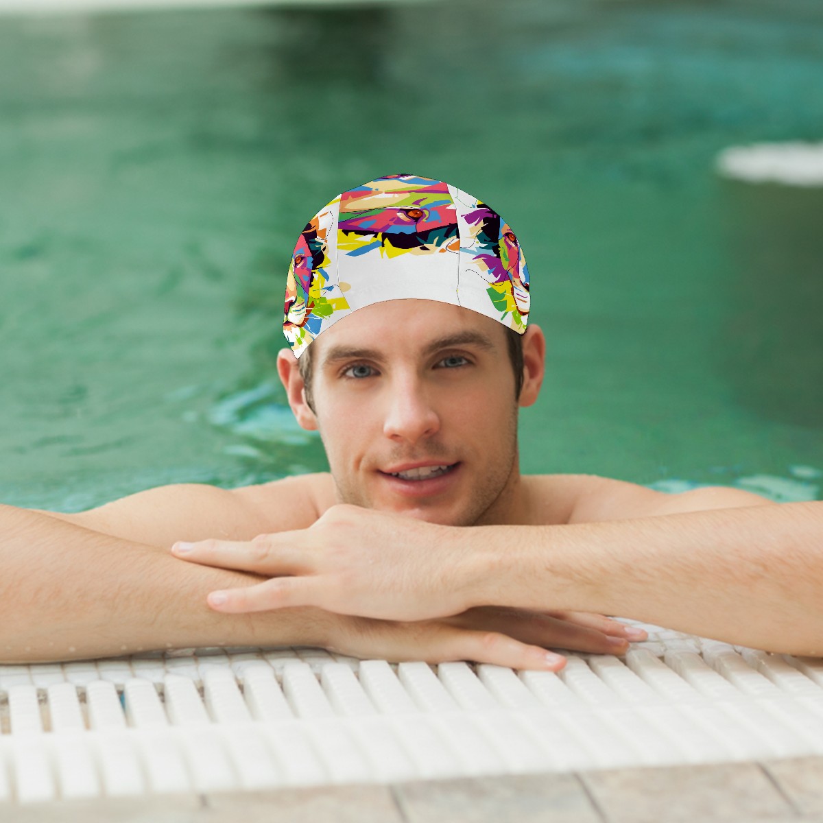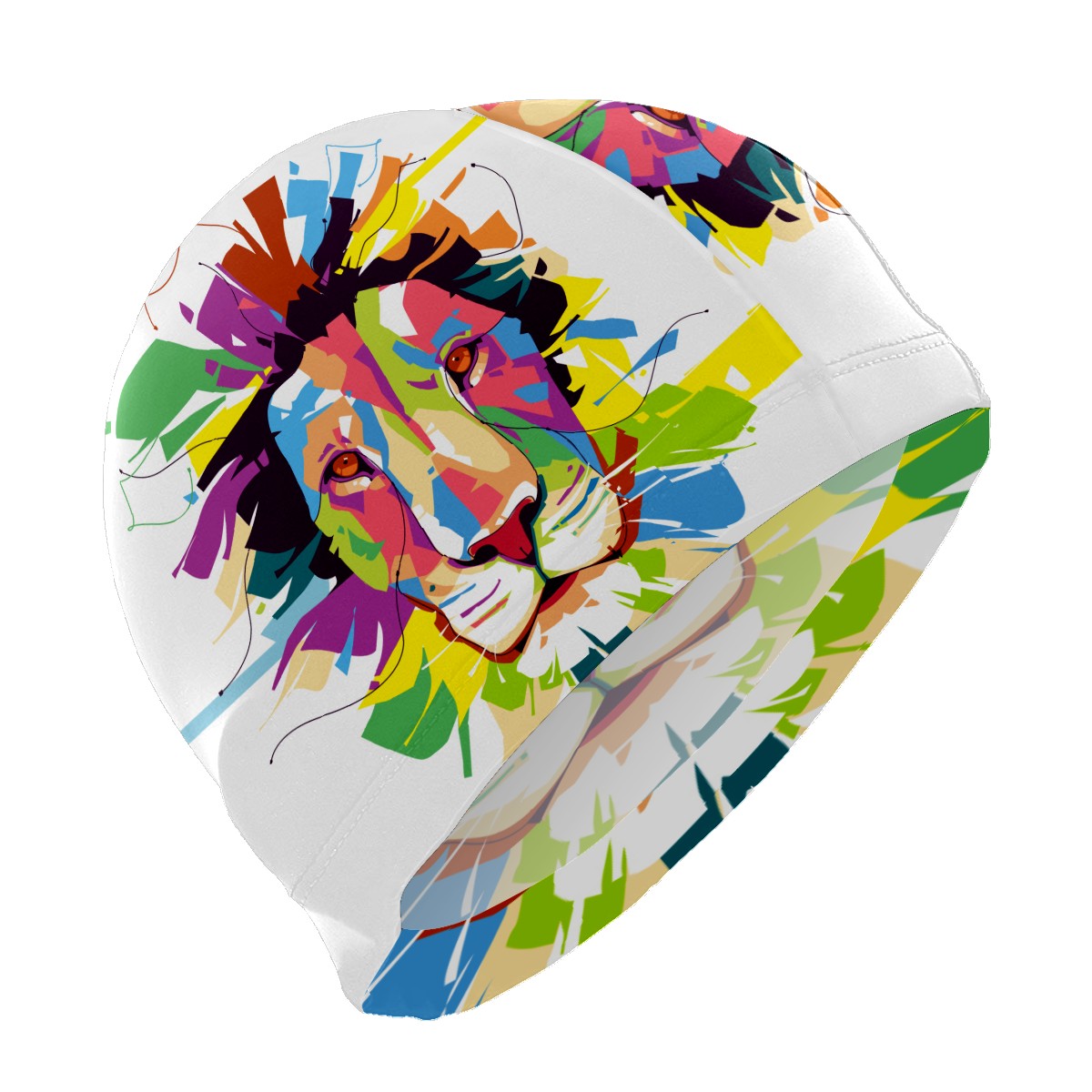 Swim Caps Colorful Lion Popart Portrait Swimming Cap Hat Bathing Shower Hair Cover for Adult Men Women Girls Boys