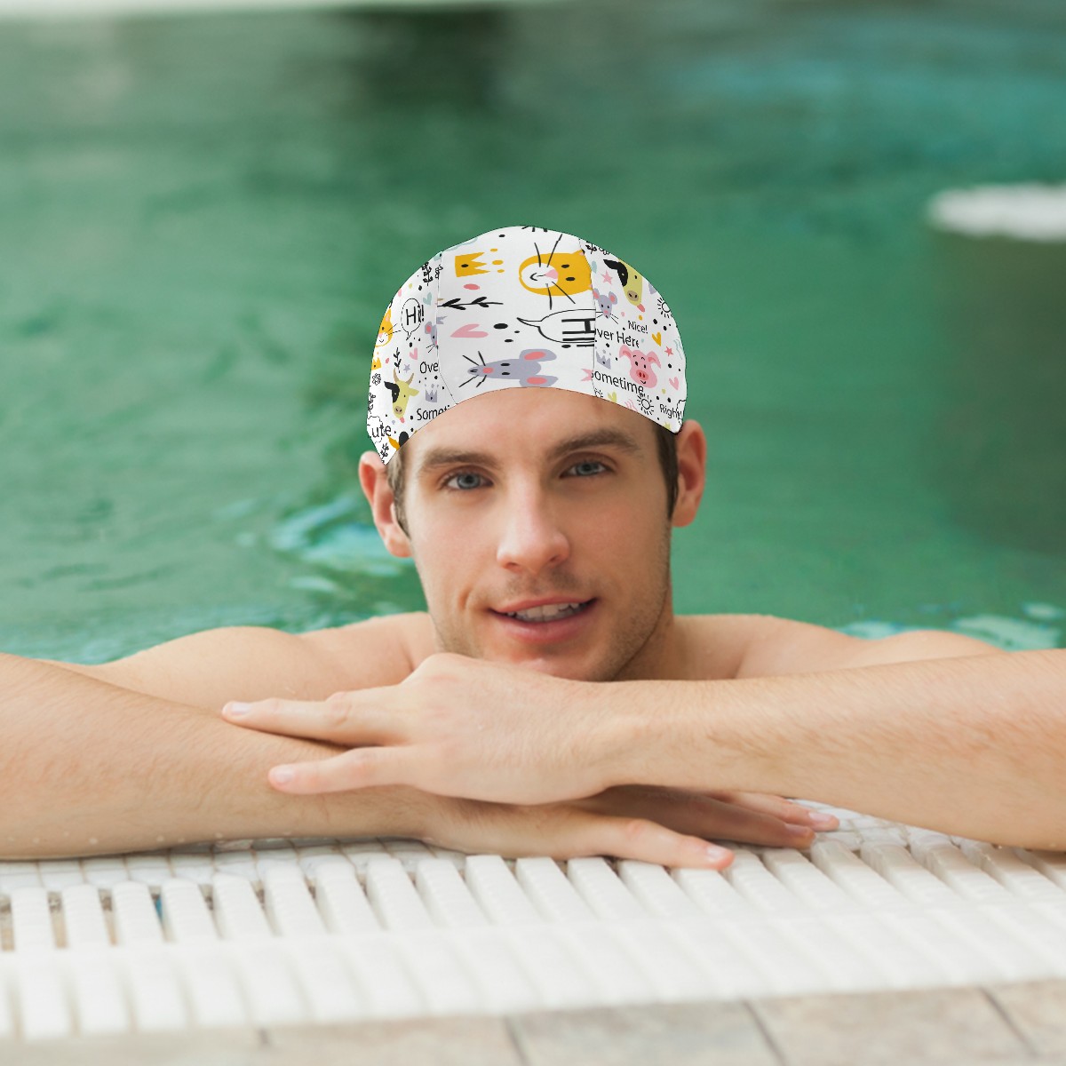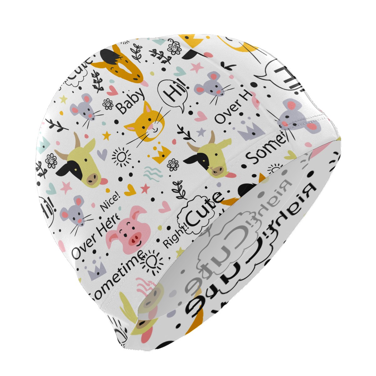 Swim Caps Colorful Doodle Animal Pig Cow Cute Crown Stars Heart Pattern Swimming Cap Hat Bathing Shower Hair Cover for Adult Men Women Girls Boys