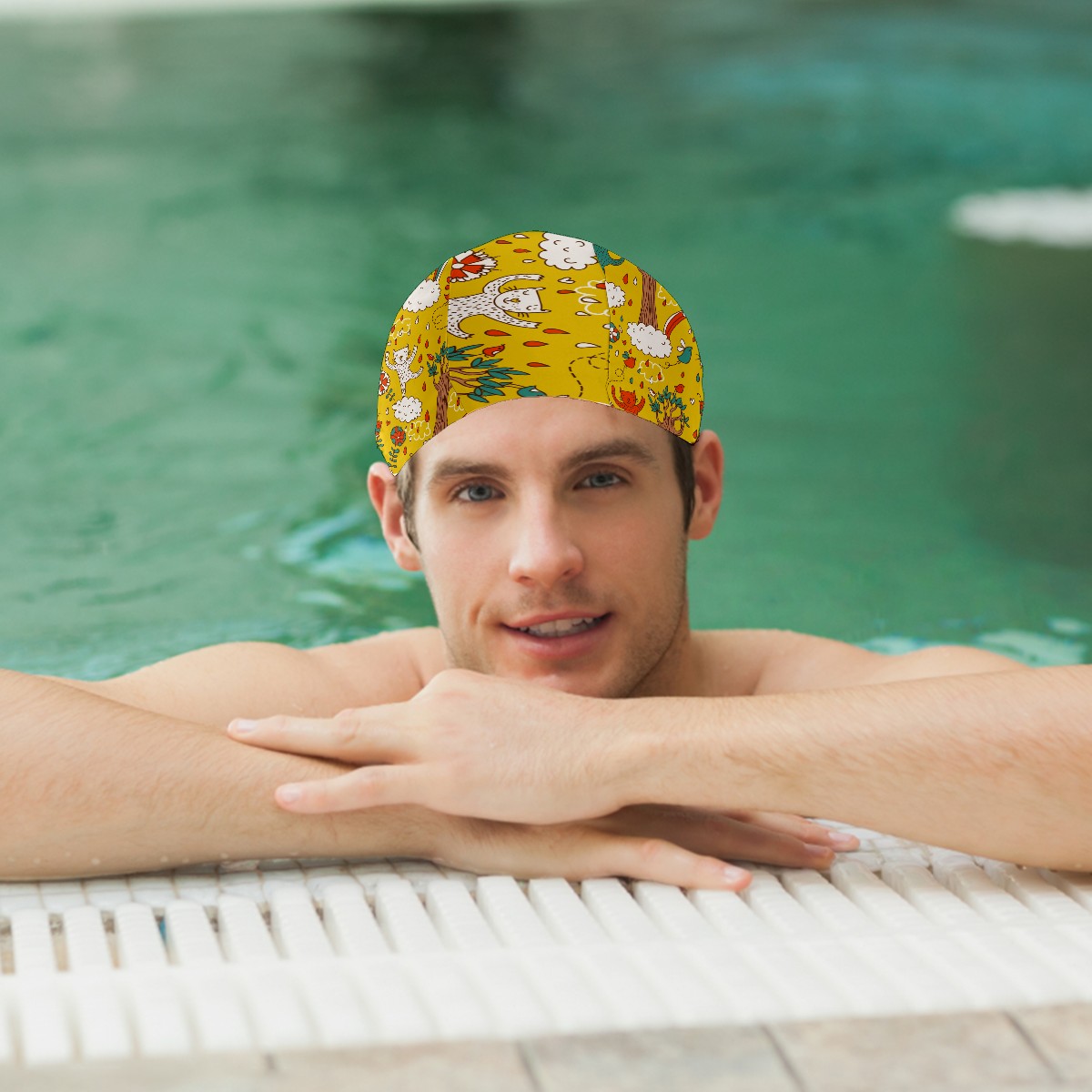<p><b>Swimming Cap Hat Bathing Shower Hair Cover for Adult Men Women Youth Girls Boys</b></p><p><b>Material:&nbsp;</b><span style="color: rgb(51, 51, 51); font-size: 16px;">88% polyester,</span>12% spandex,&nbsp;</p><p><b>Size:</b>&nbsp;10 x 7.87 Inch (Cap height 7.87 inch, Cap stitching width 10 inch)</p><p><b>Weight:</b>&nbsp;20g</p><p><b>Product Feature:&nbsp;</b></p><p>-Swim cap design keeps hair&amp;ears dry, protecting your hair. This swimming cap is easier to put on and off than the silicone cap.It has a durable and elastic surface,and Anti-slip design</p><p>-Tie your hair up and put it into the swim cap gently, this swimming cap provide great fit for adults no matter you hair is long, short,thick or curly, the swim cap can totally wrap your hair and prevent water</p><p>-Fashionable print swim caps suitable for recreational non-professional swimming personnel, for adults and teenagers to wear</p><p><b>If you have any questions, please contact us.</b></p>