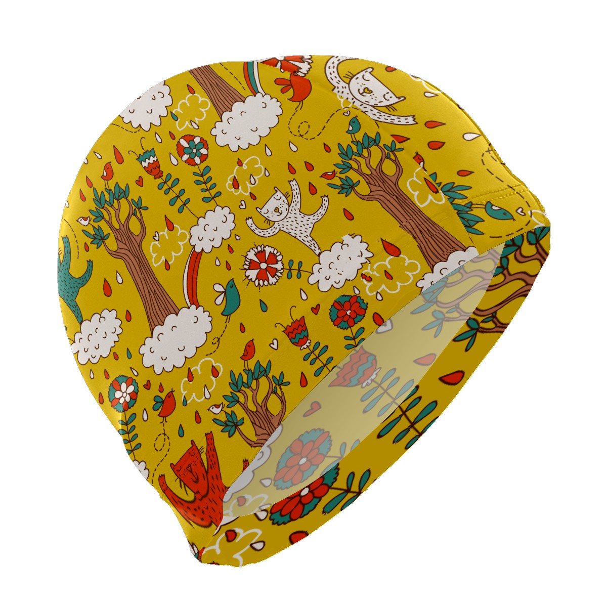 Swim Caps Cartoon Frost Cat Bird Clouds Rainy Swimming Cap Hat Bathing Shower Hair Cover for Adult Men Women Girls Boys