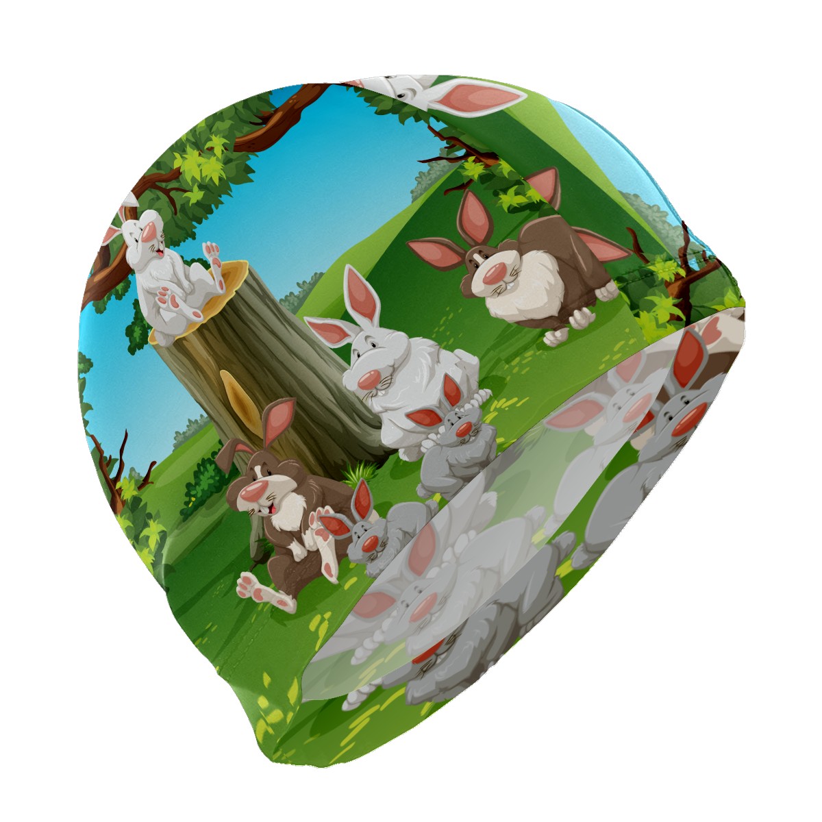 Swim Caps Cartoon Rabbit Tree Garden Swimming Cap Hat Bathing Shower Hair Cover for Adult Men Women Girls Boys