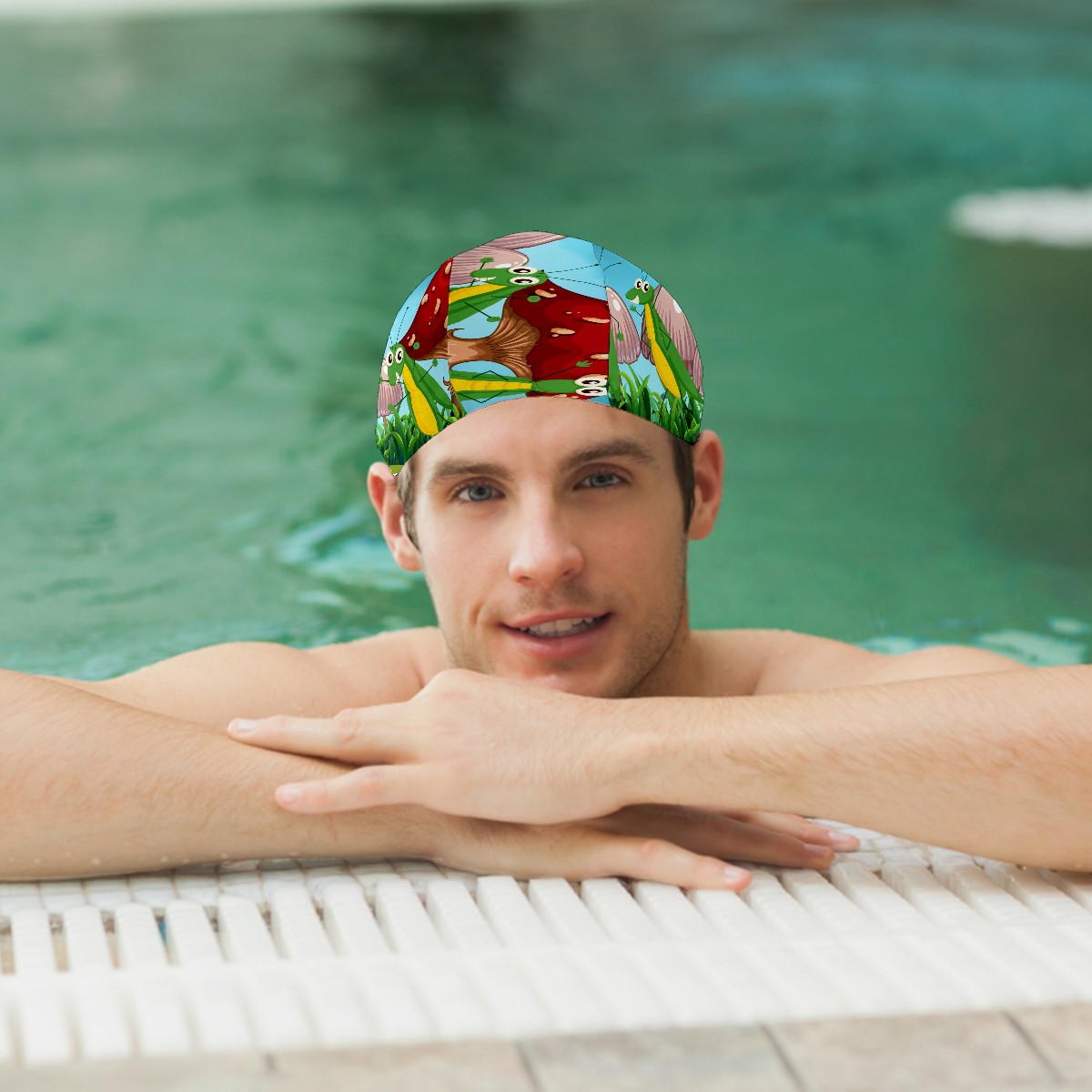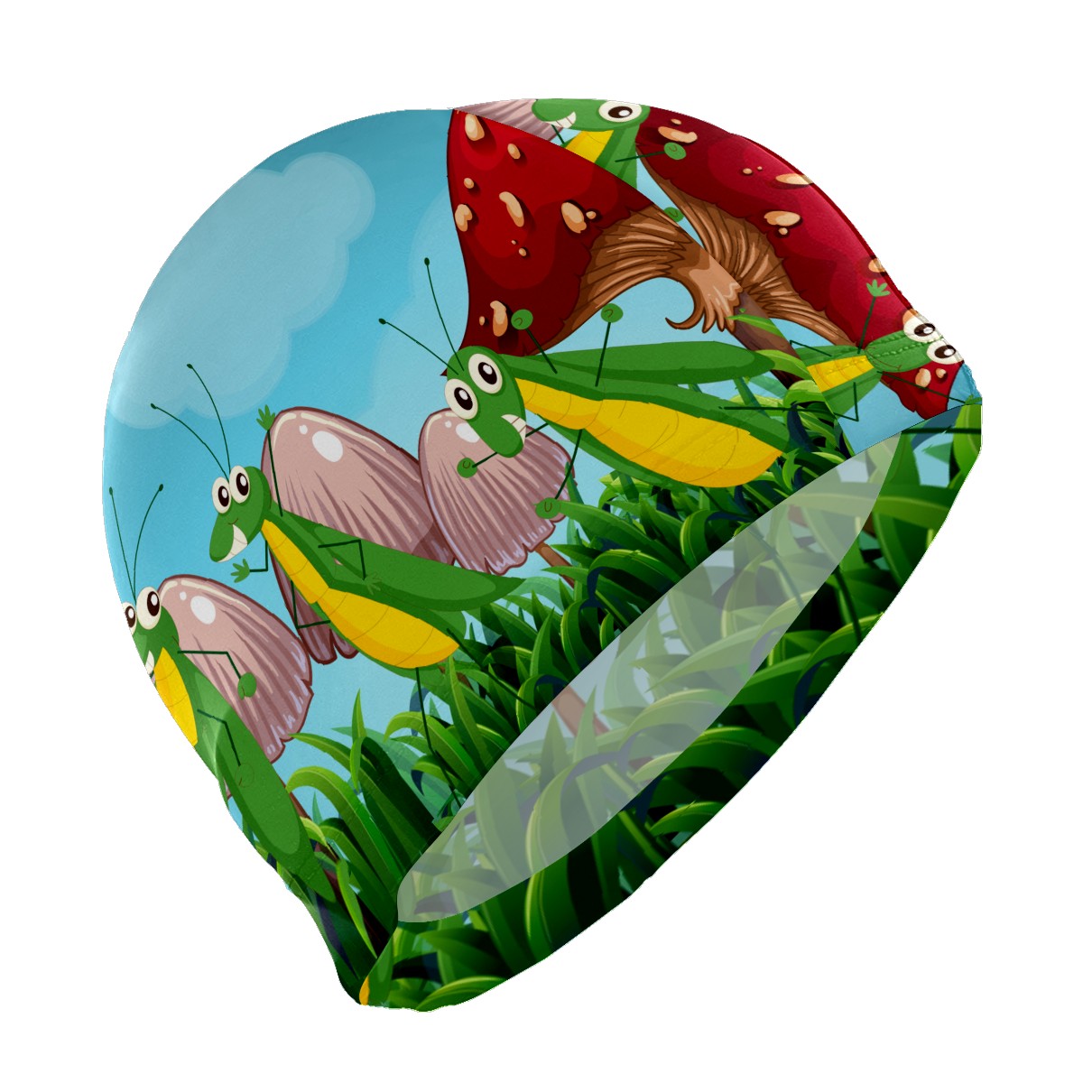 Swim Caps Cartoon Grasshopper Insect Mushroom Forest Swimming Cap Hat Bathing Shower Hair Cover for Adult Men Women Girls Boys