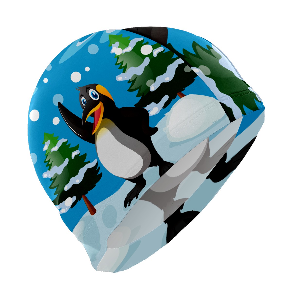Swim Caps Cartoon Penguin Christmas Tree Swimming Cap Hat Bathing Shower Hair Cover for Adult Men Women Girls Boys