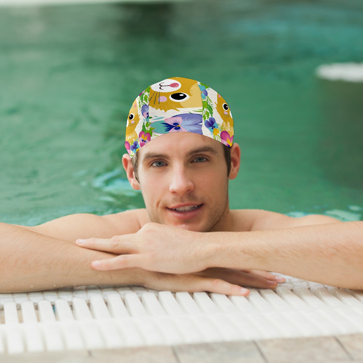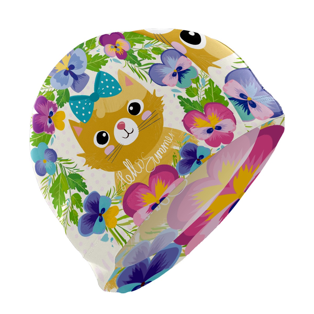 Swim Caps Cartoon Cat With Colorful Flower Bow Swimming Cap Hat Bathing Shower Hair Cover for Adult Men Women Girls Boys