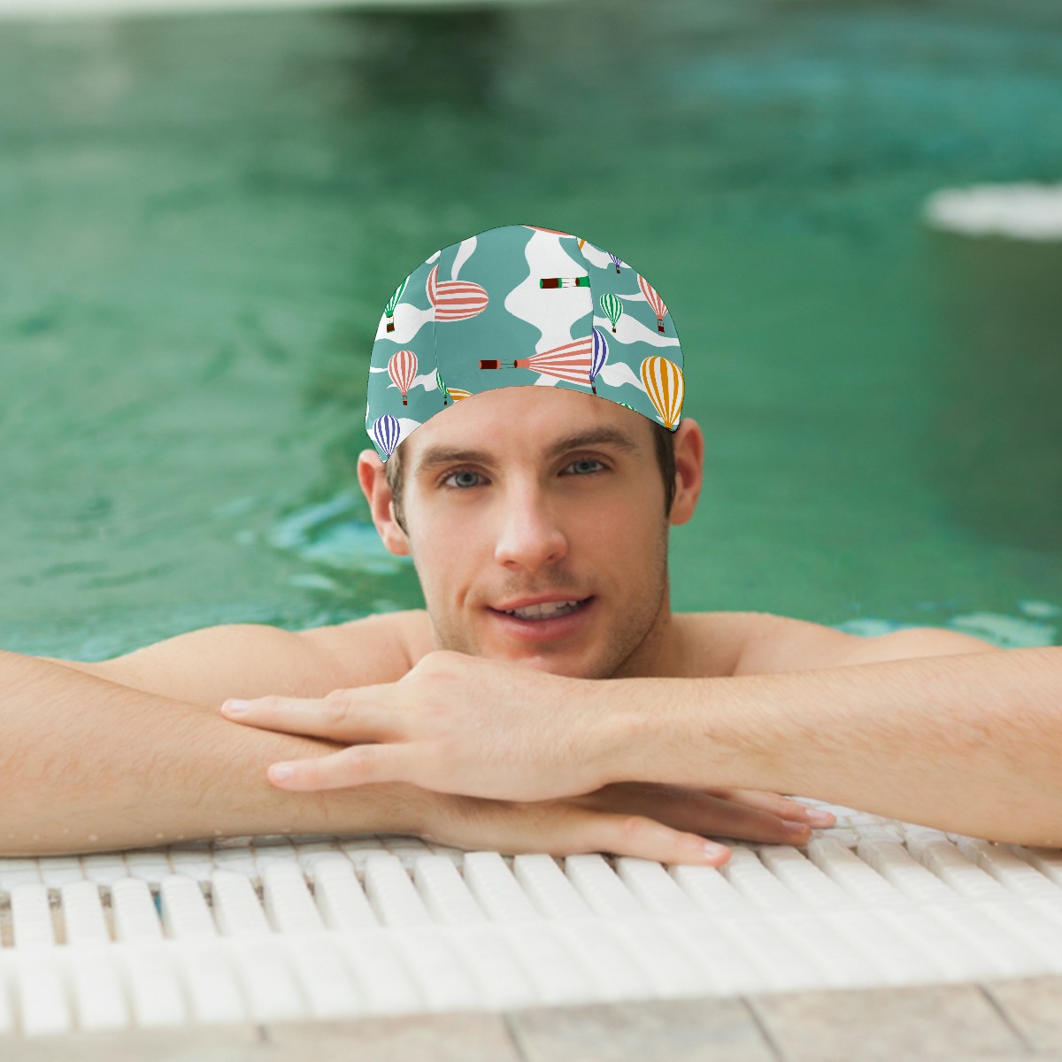 Swim Caps Cartoon Colorful Hot Air Balloon Pattern Swimming Cap Hat Bathing Shower Hair Cover for Adult Men Women Girls Boys