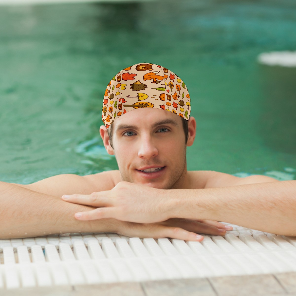 Swim Caps Autumn Hedgehog Fox Leaves Rainy Tree Doodle Pattern Swimming Cap Hat Bathing Shower Hair Cover for Adult Men Women Girls Boys