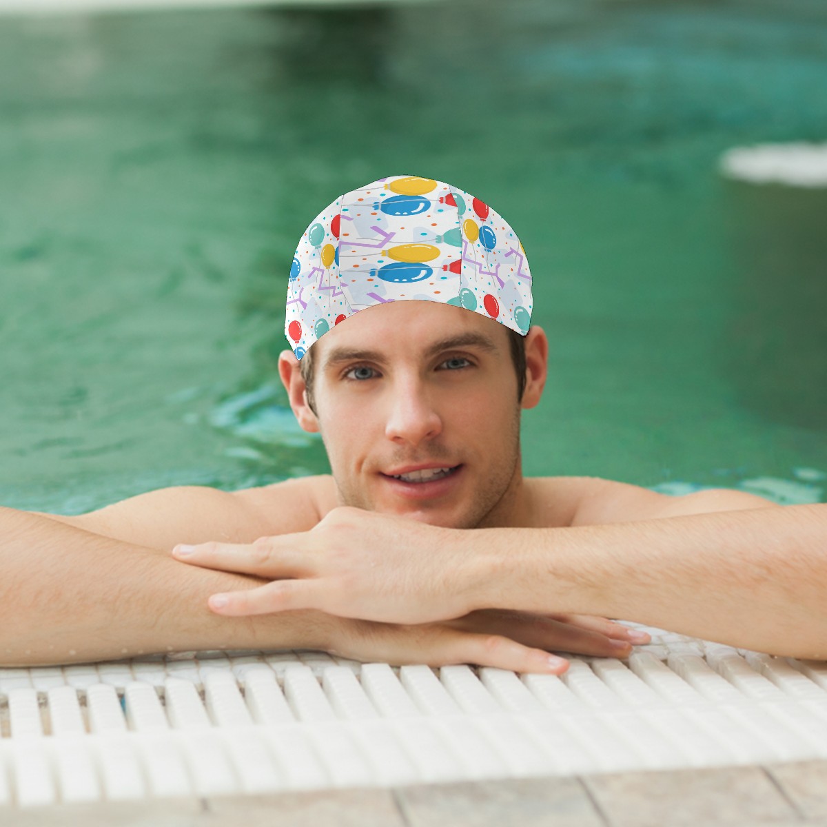 Swim Caps Cartoon Ballons Pattern Swimming Cap Hat Bathing Shower Hair Cover for Adult Men Women Girls Boys