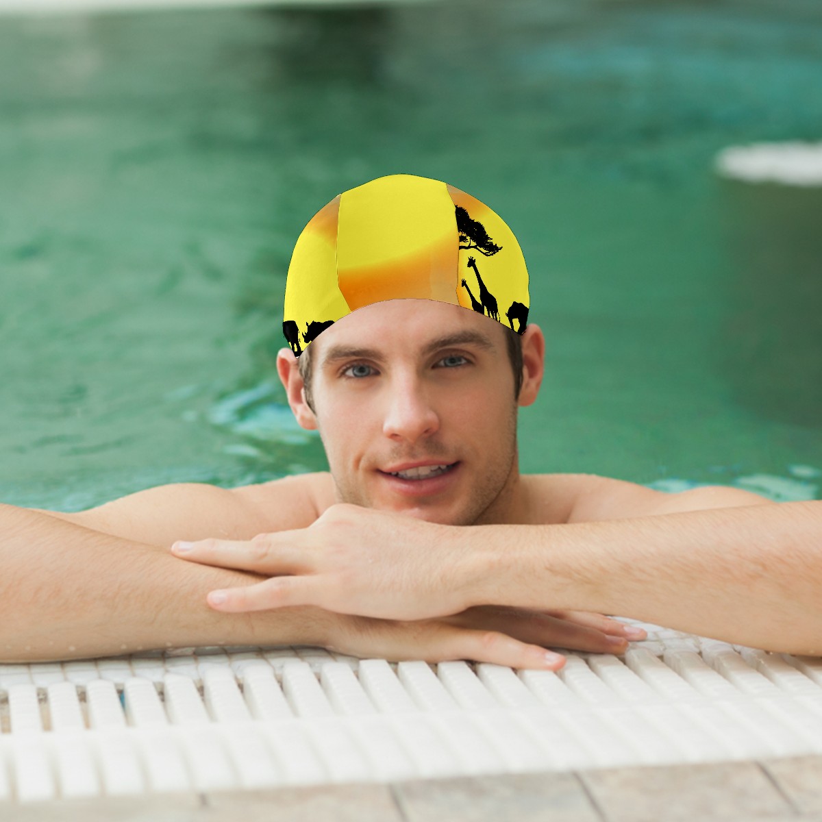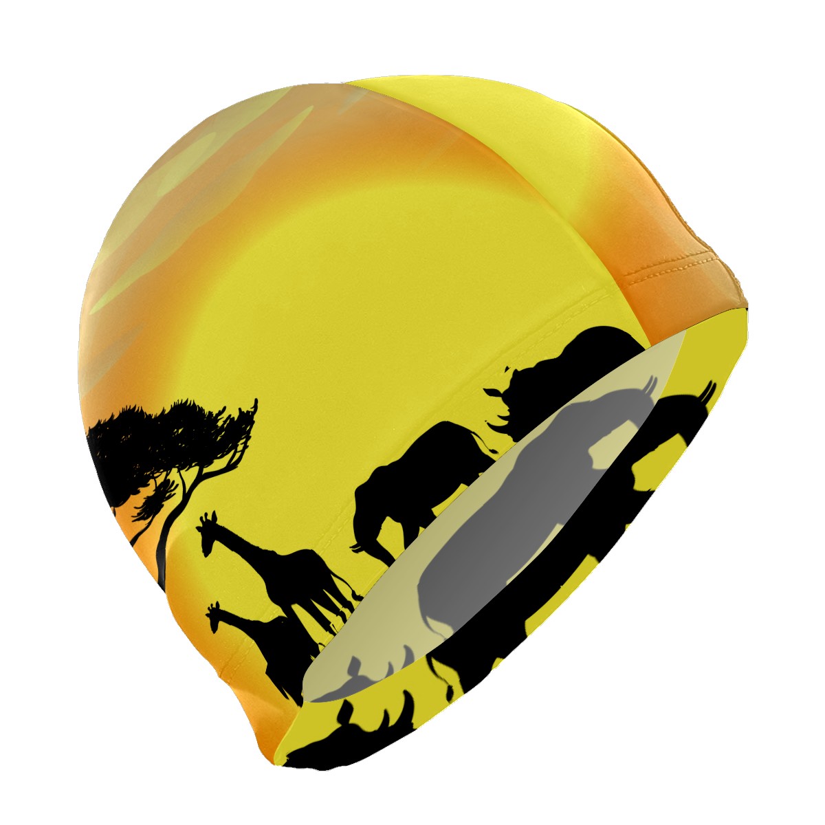 Swim Caps Africa Animal Elephant Giraffe Sunset Swimming Cap Hat Bathing Shower Hair Cover for Adult Men Women Girls Boys