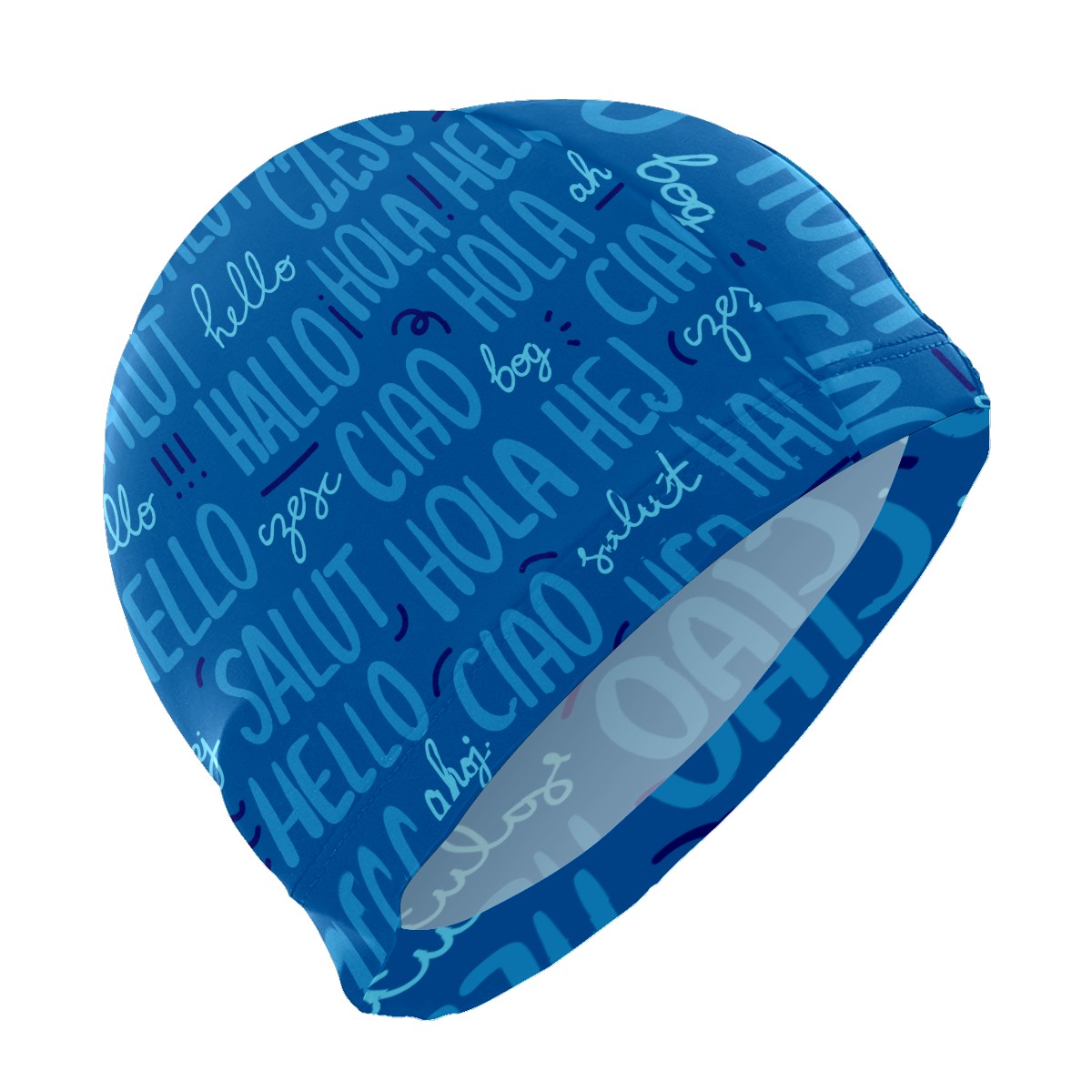 Swim Caps Blue Countries Greetings Hello Swimming Cap Hat Bathing Shower Hair Cover for Adult Men Women Girls Boys
