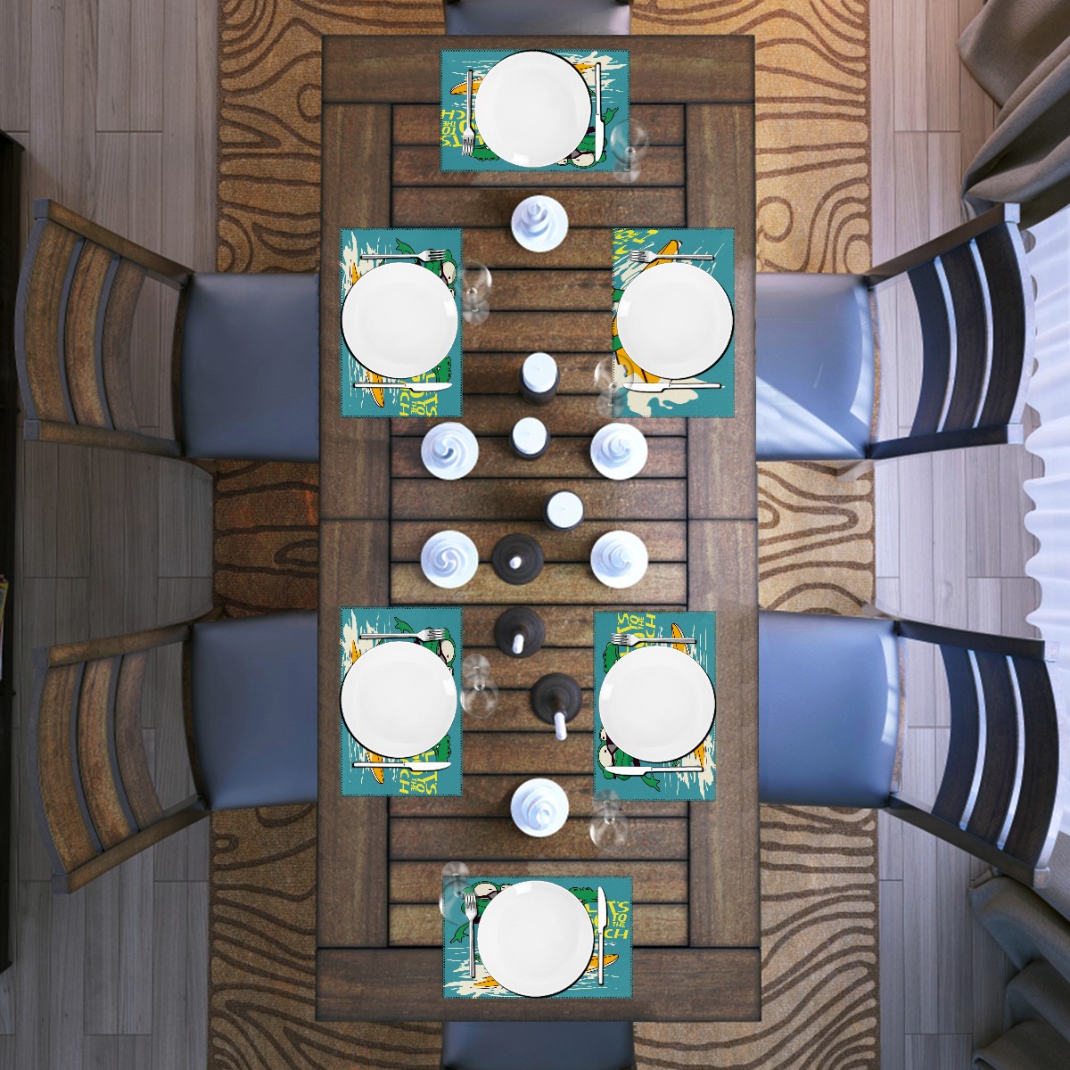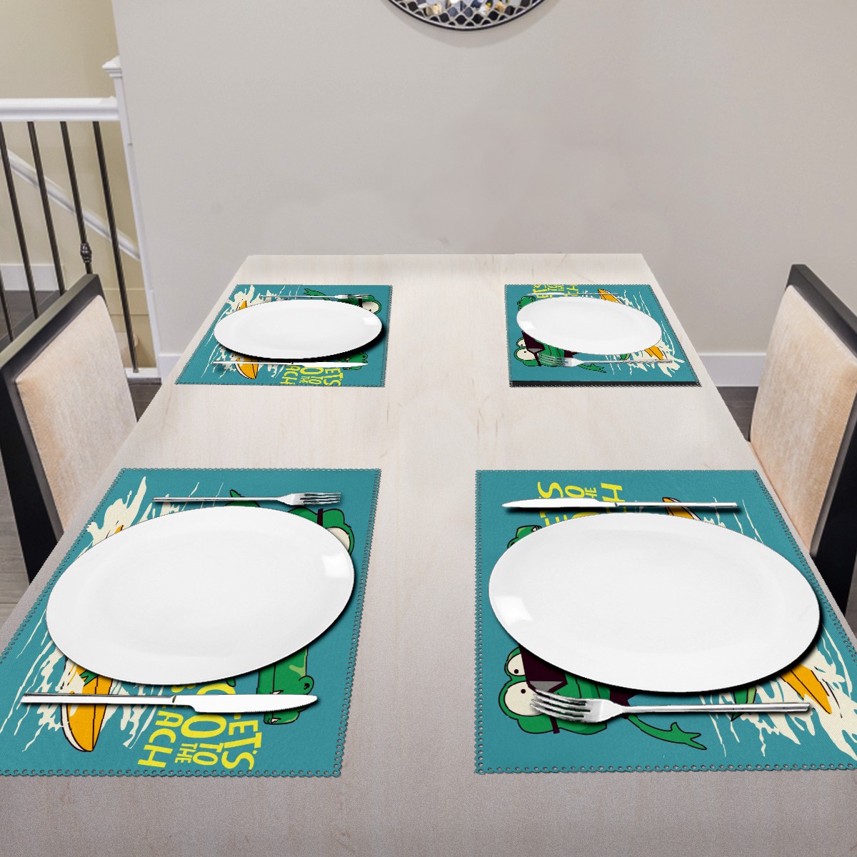 <p>Material: Polyester</p><p>Size:12x18 in</p><p>Shape: rectangle</p><p>Package:Table placemats Set of 1/4/6</p><p>Features: beautiful, insulation, anti slip, anti scald</p><p>Application: all kinds of dining table, coffee table, desk</p><p>It is aslo can decorate the table.</p>