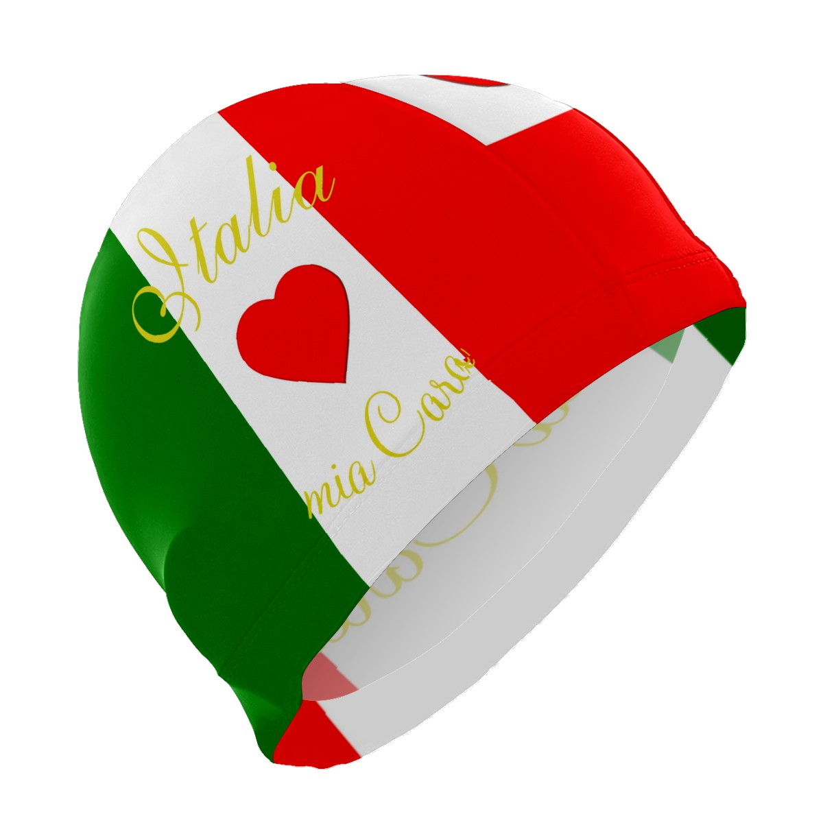 Swim Caps Italy Italian Italia Mia Cara Flag Swimming Cap Hat Bathing Shower Hair Cover for Adult Men Women Girls Boys