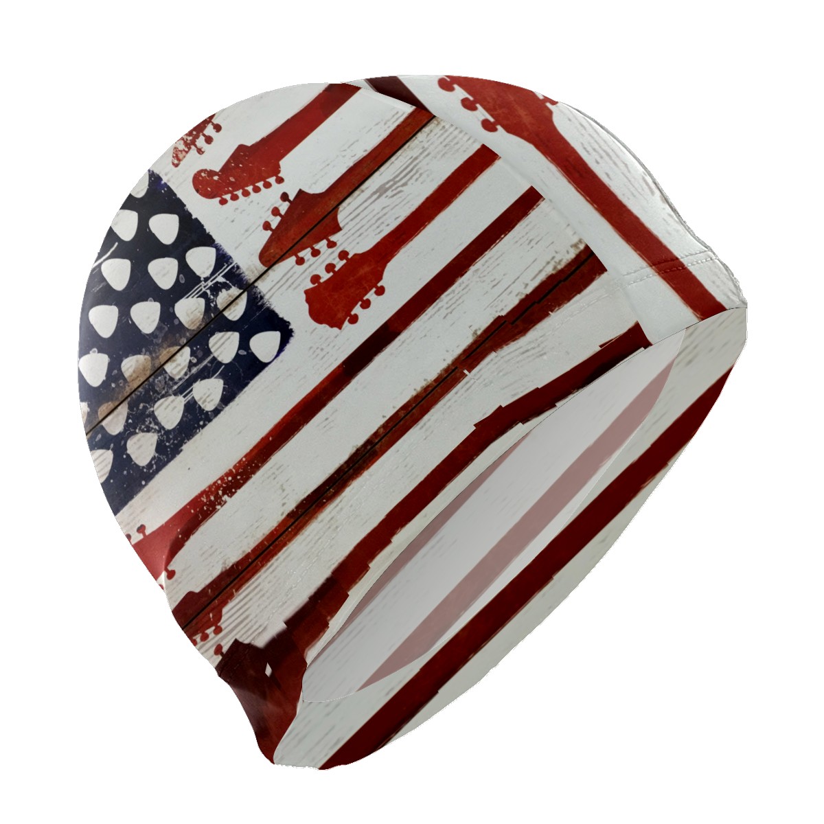 Swim Caps American Flag Patriotic Guitar Music Swimming Cap Hat Bathing Shower Hair Cover for Adult Men Women Girls Boys