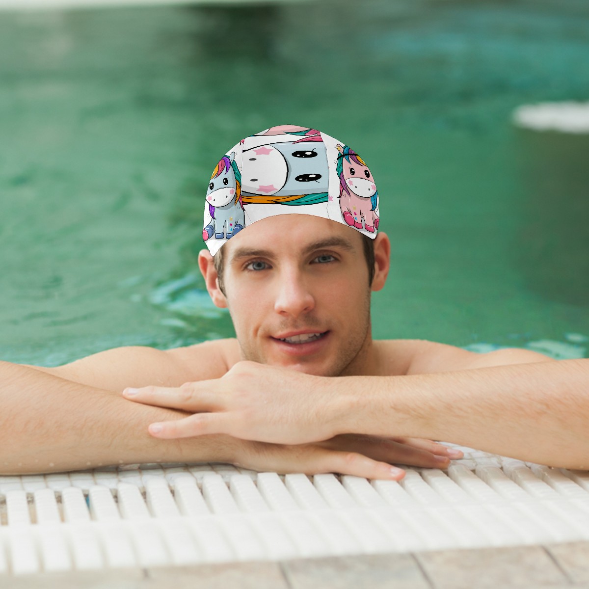 Swim Caps Cute Cartoon Unicorn Cow Lover Couple Swimming Cap Hat Bathing Shower Hair Cover for Adult Men Women Girls Boys