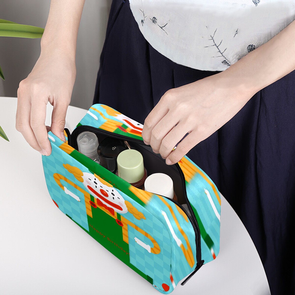 Cosmetic Bag for Women Girls Trave Makeup Bag Toiletry Case Pouch Accessories Organizer Happy Birthday Funny Clown Gift