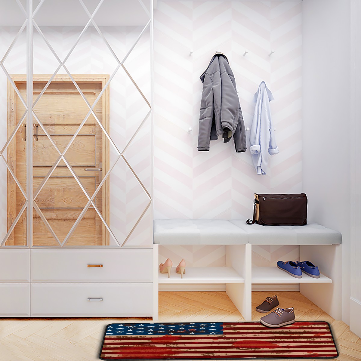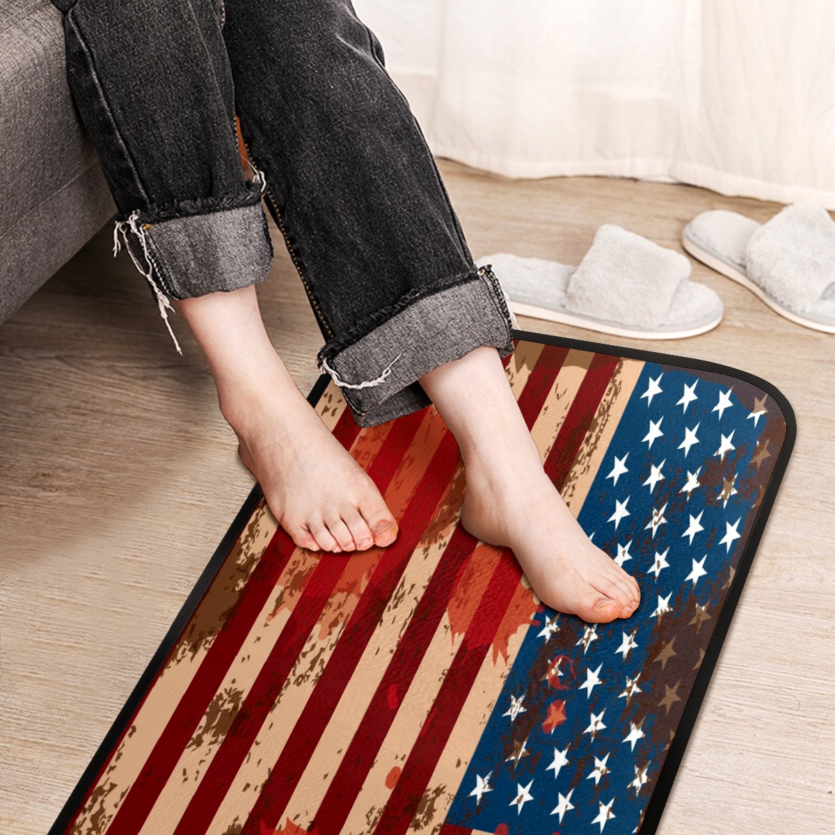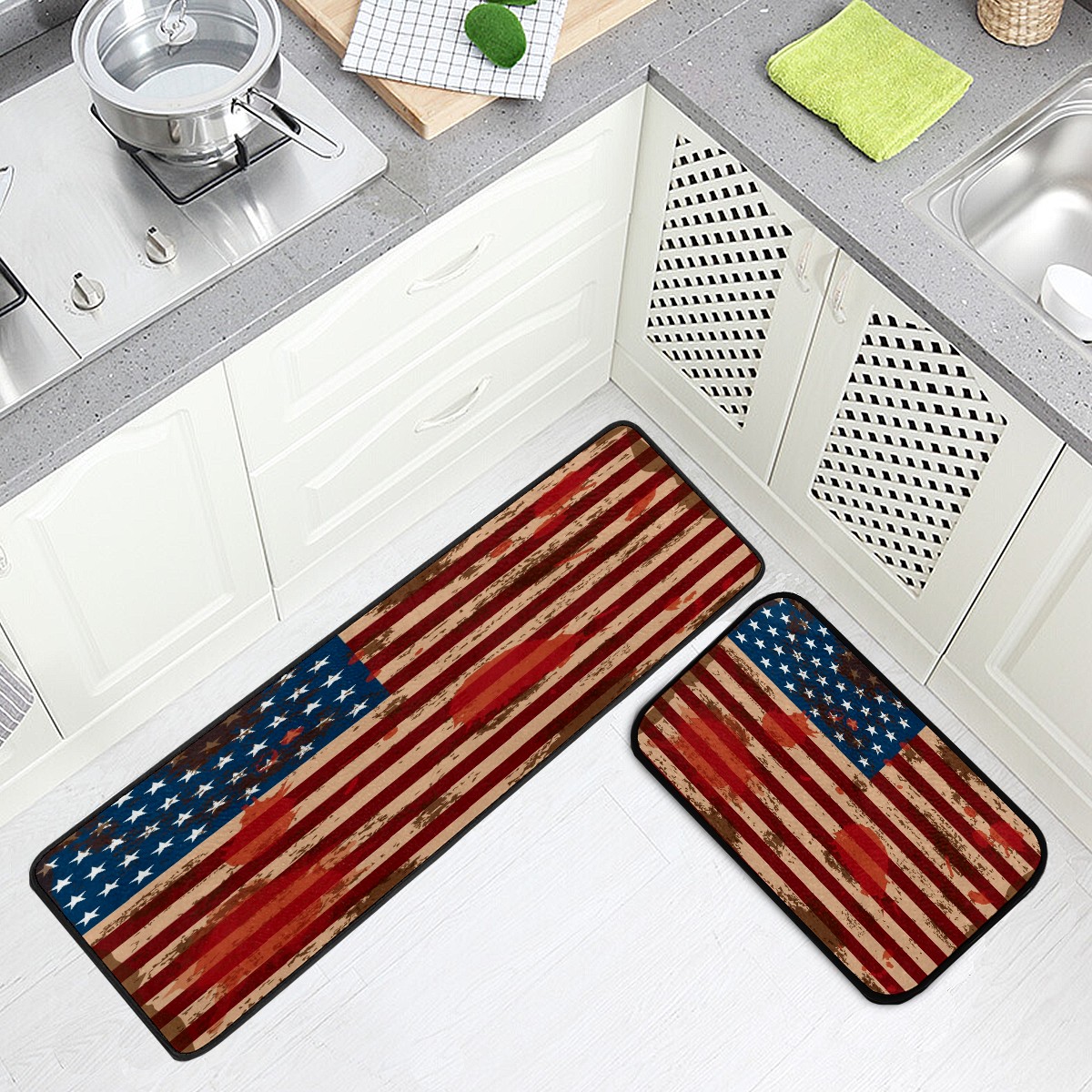 Kitchen Rugs Runner USA Flag Paint Splashes Grunge Comfort Floor Mat Bath Mats Bed Desk Bathroom Area Rug Long Doormat Carpet Home Hotel