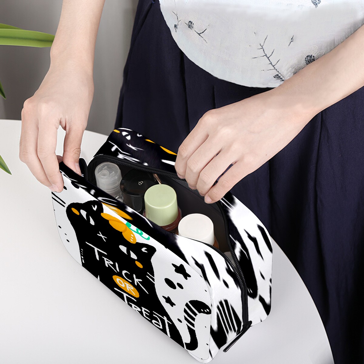 Cosmetic Bag for Women Girls Trave Makeup Bag Toiletry Case Pouch Accessories Organizer Halloween Cute Black Cat Trick Or Treat