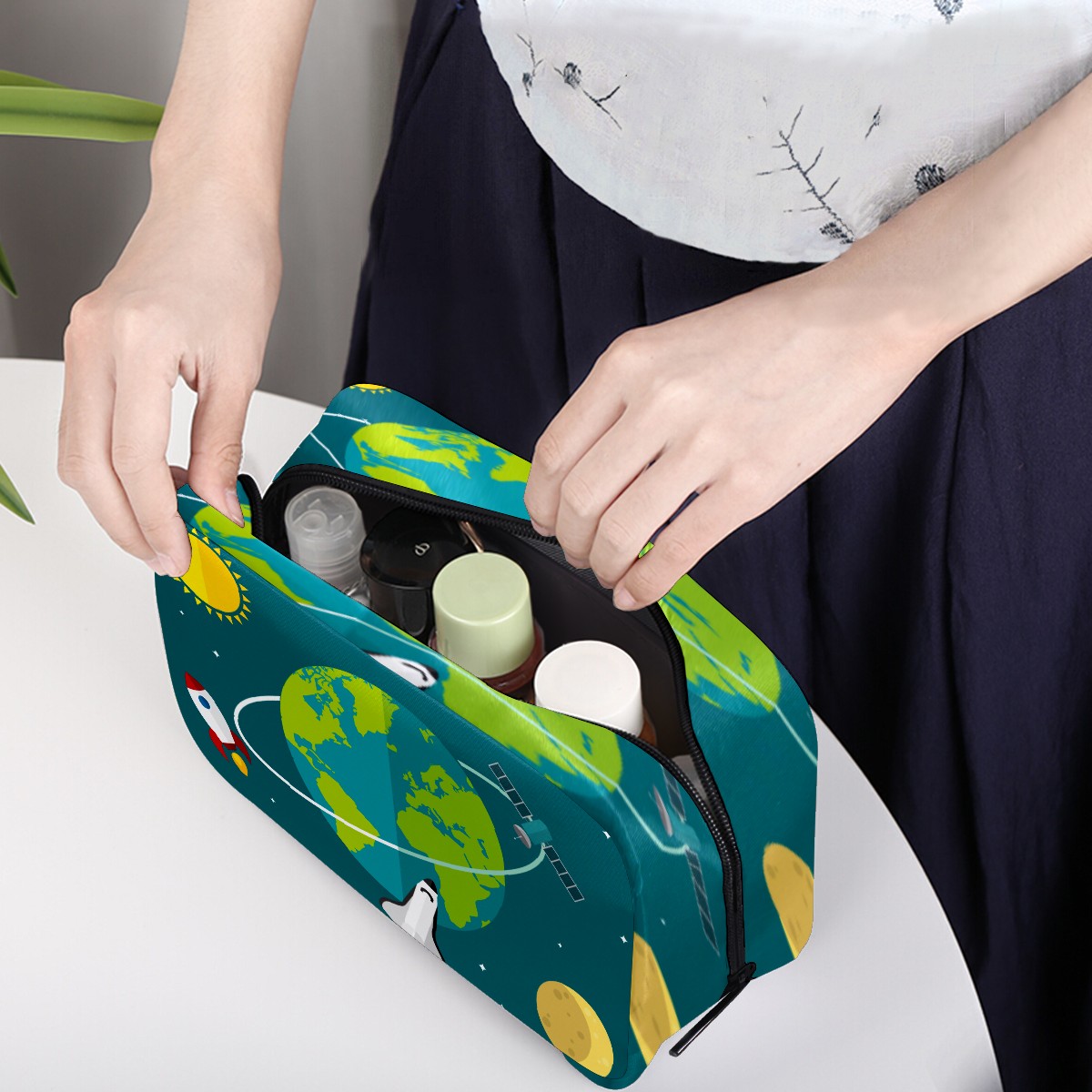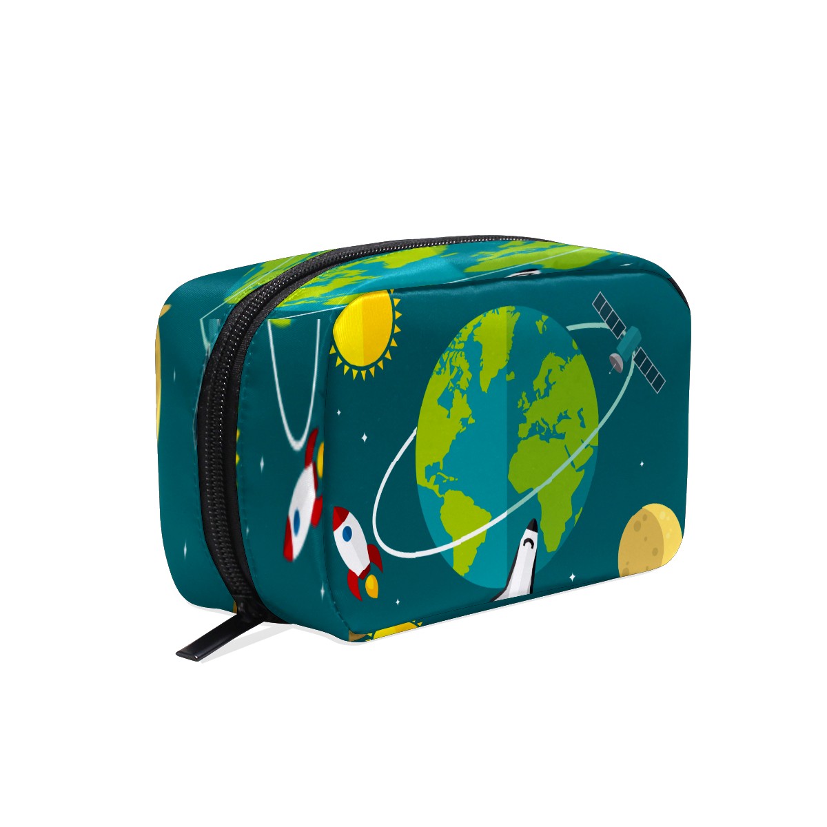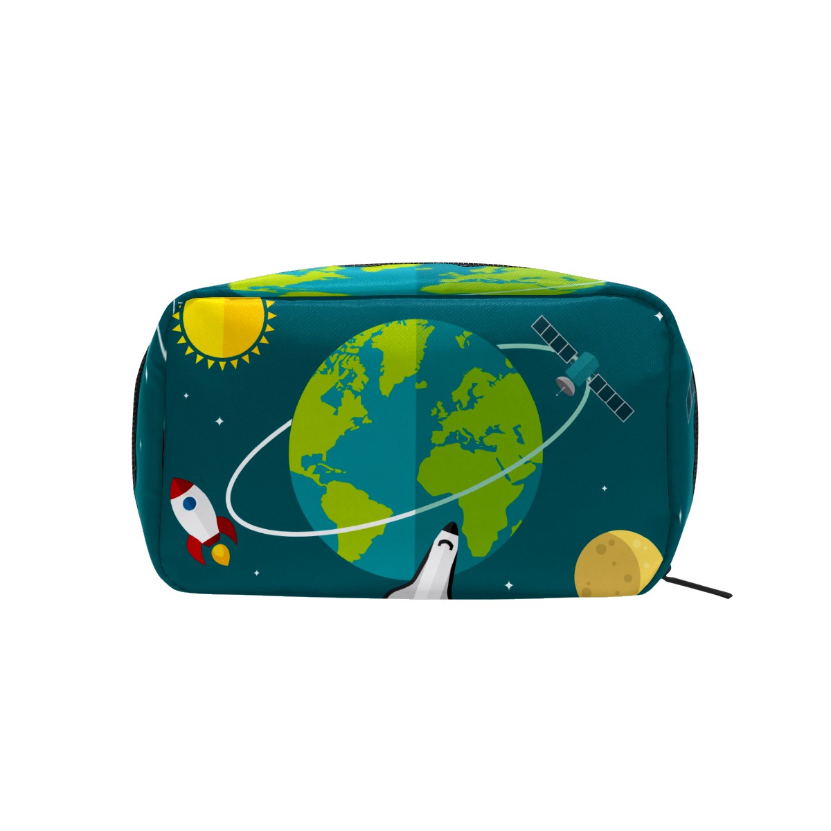 Cosmetic Bag for Women Girls Trave Makeup Bag Toiletry Case Pouch Accessories Organizer Globus Flat Trave Earth