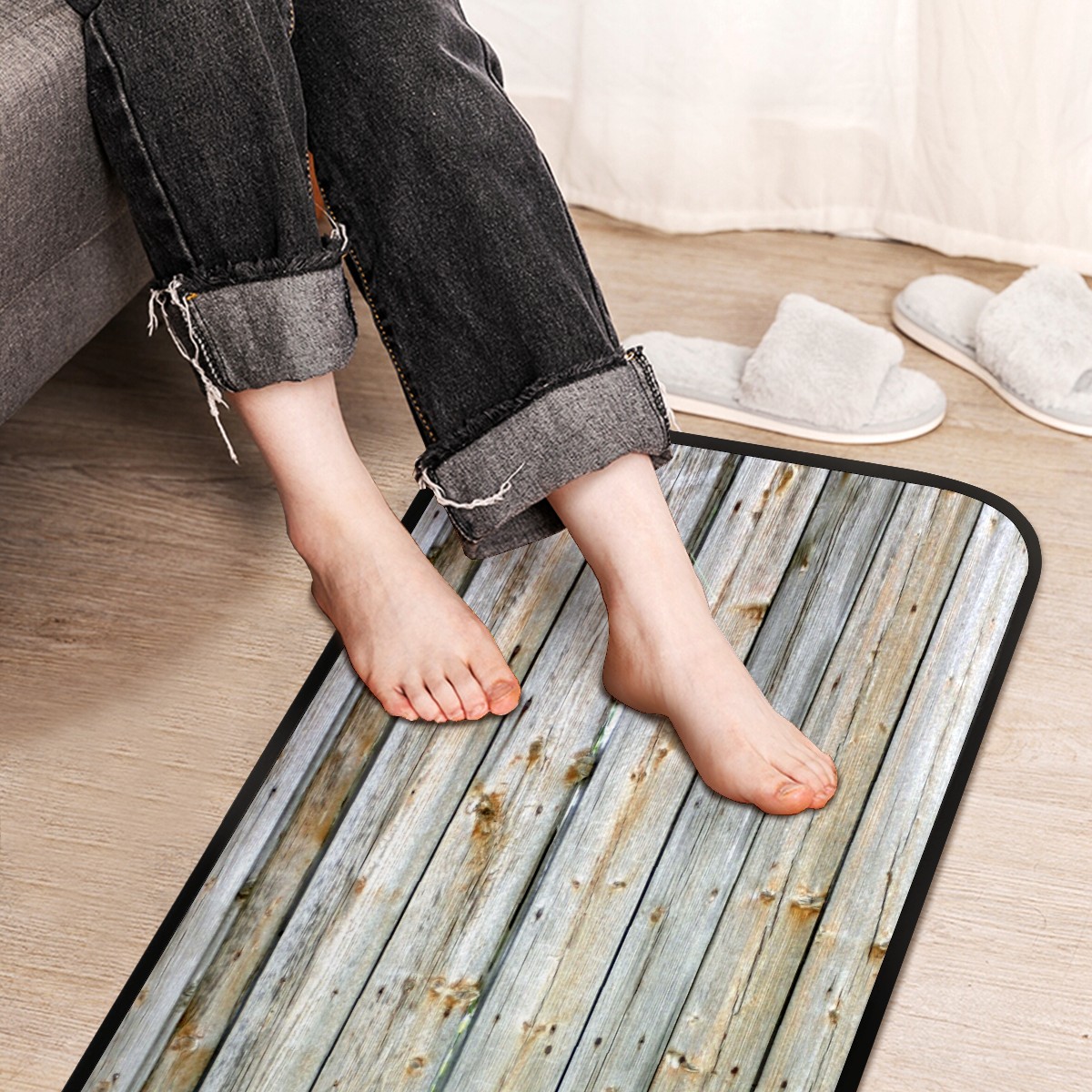 Kitchen Rugs Runner Rustic Cabin Barn Wooden Board Old Comfort Floor Mat Bath Mats Bed Desk Bathroom Area Rug Long Doormat Carpet Home Hotel