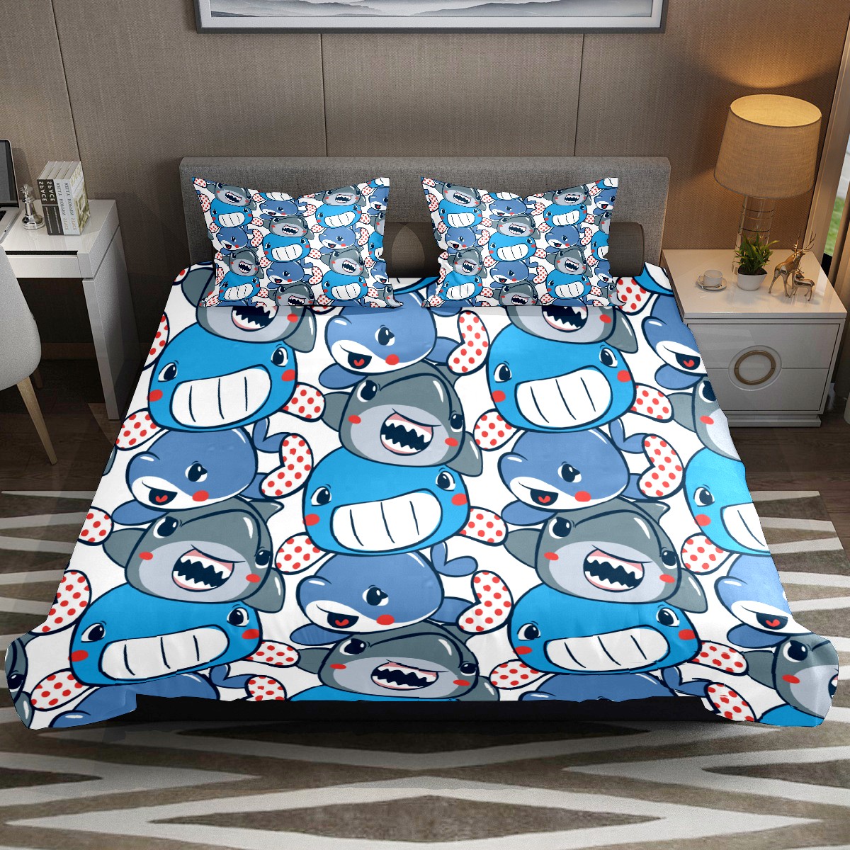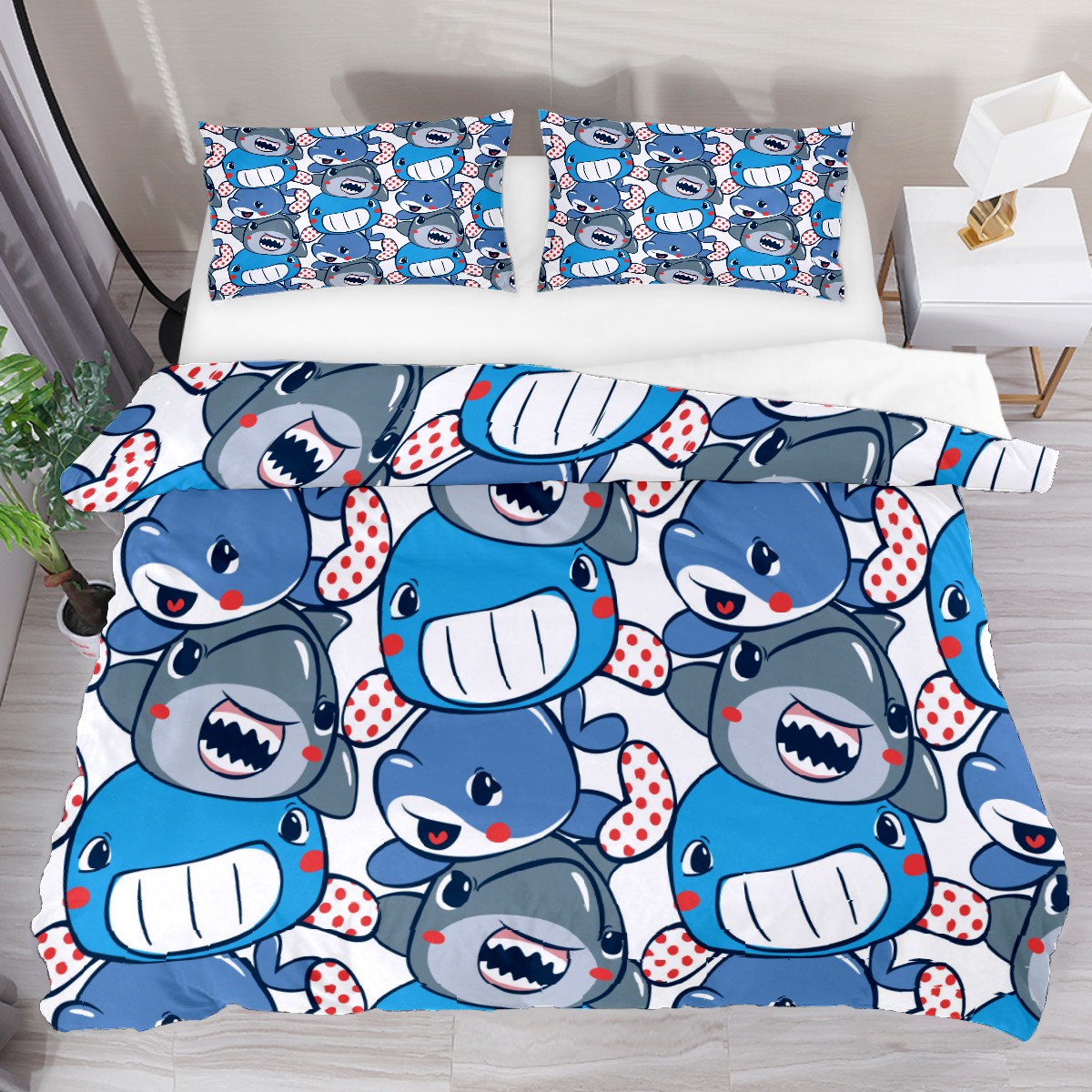 Duvet Cover Twin Ocean Sealife Cute Fish Whale 3pcs Bedding Duvet Cover Set Modern Quilt Cover Microfiber Comforter Cover with Button Closure with 2 Pillow Cases 1 Duvet Cover