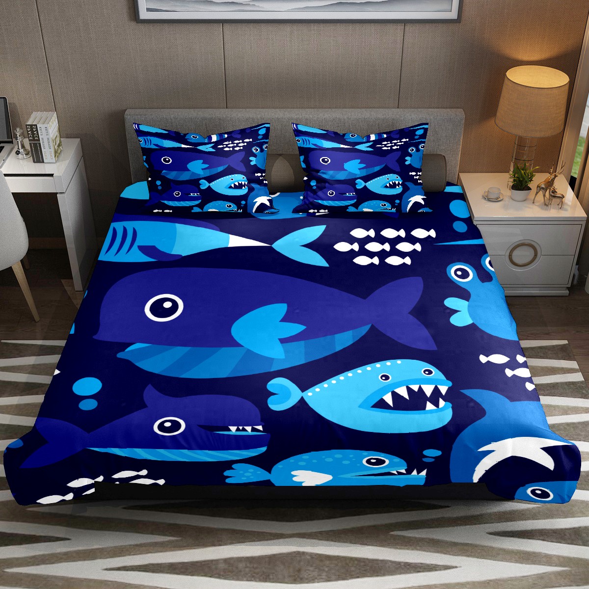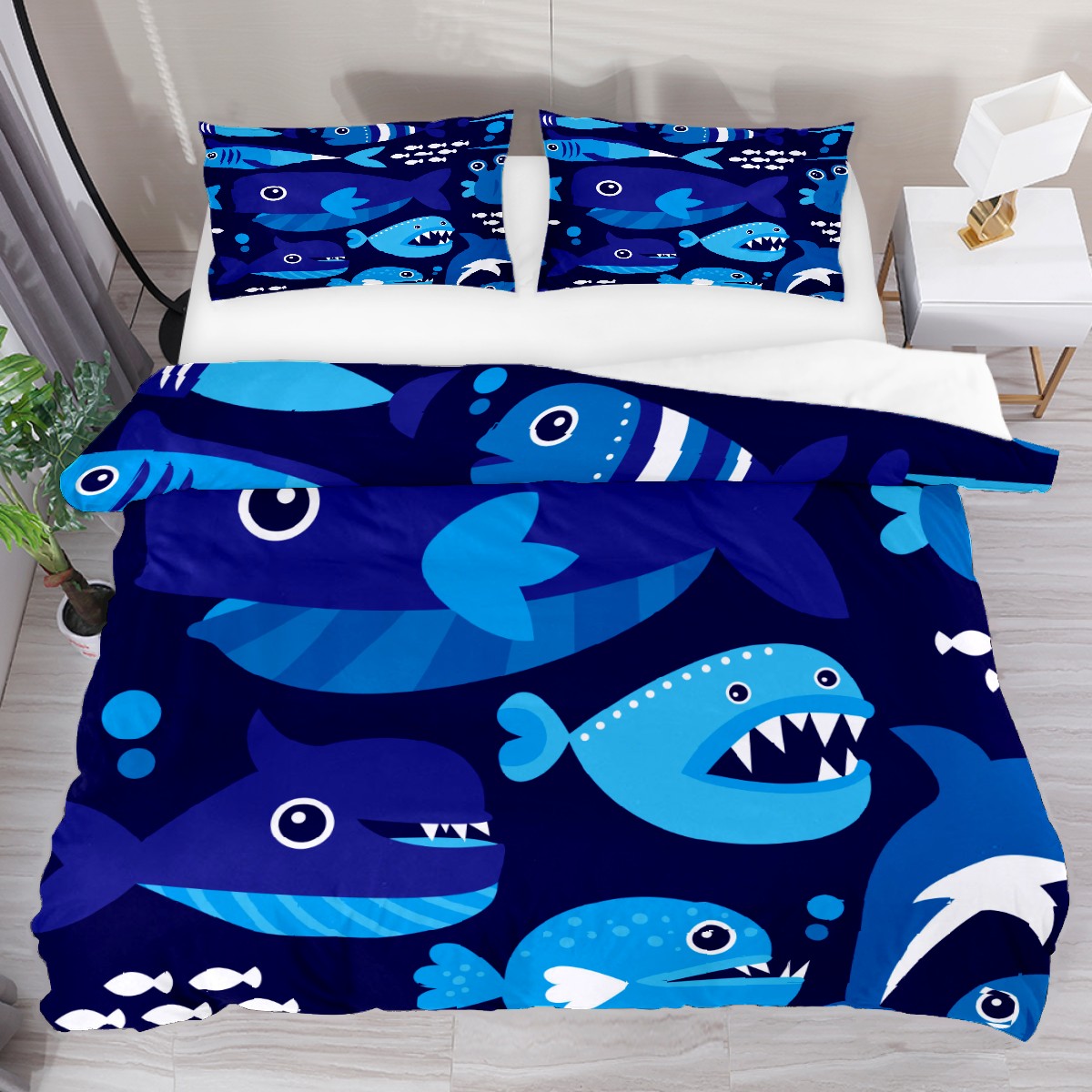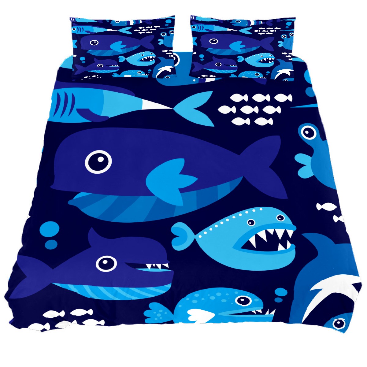Duvet Cover Twin Ocean Sealife Blue Fish Shark 3pcs Bedding Duvet Cover Set Modern Quilt Cover Microfiber Comforter Cover with Button Closure with 2 Pillow Cases 1 Duvet Cover