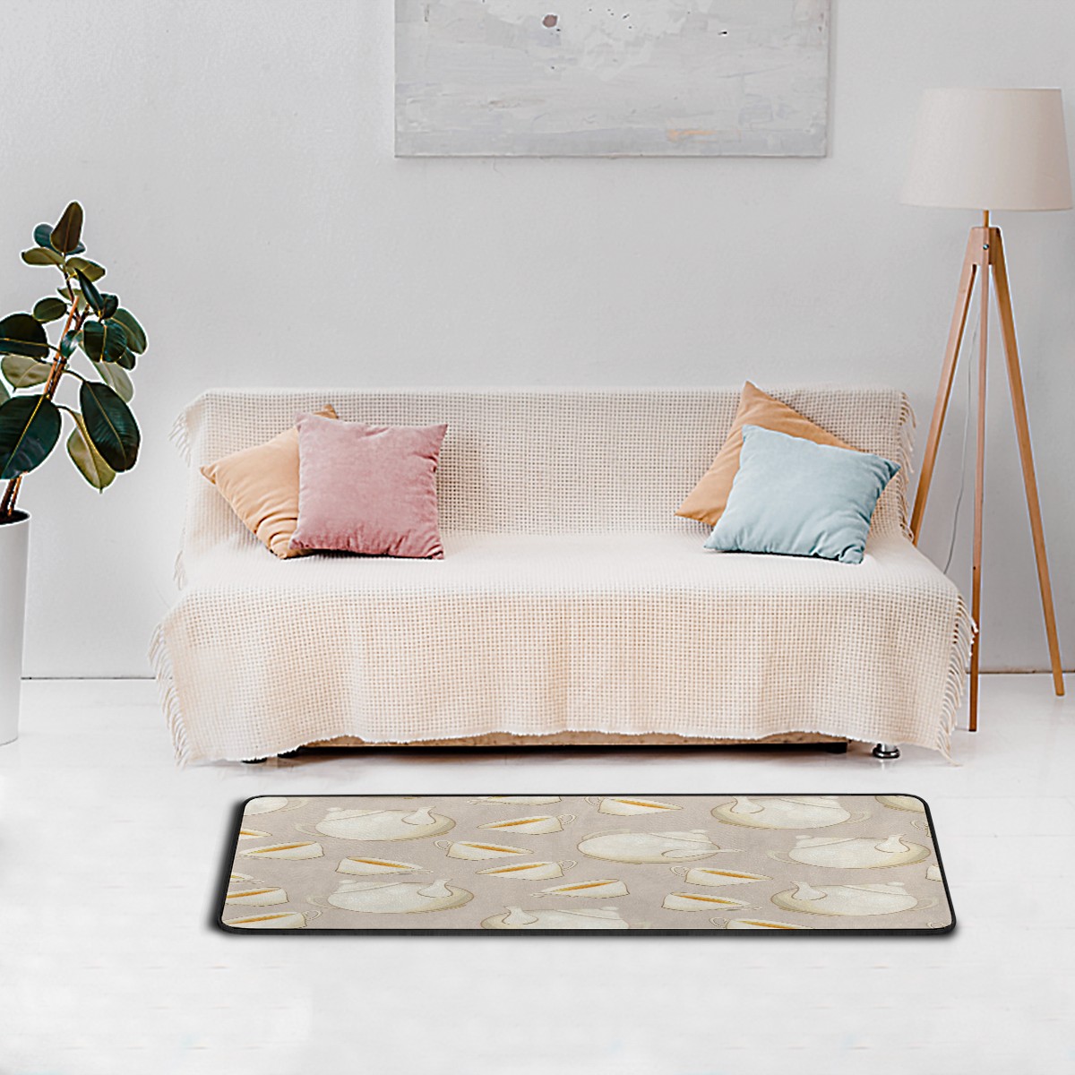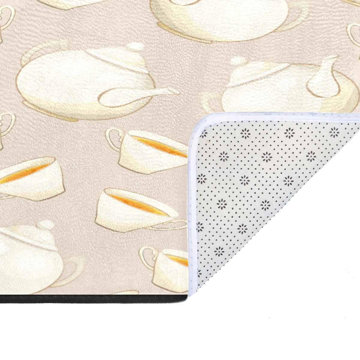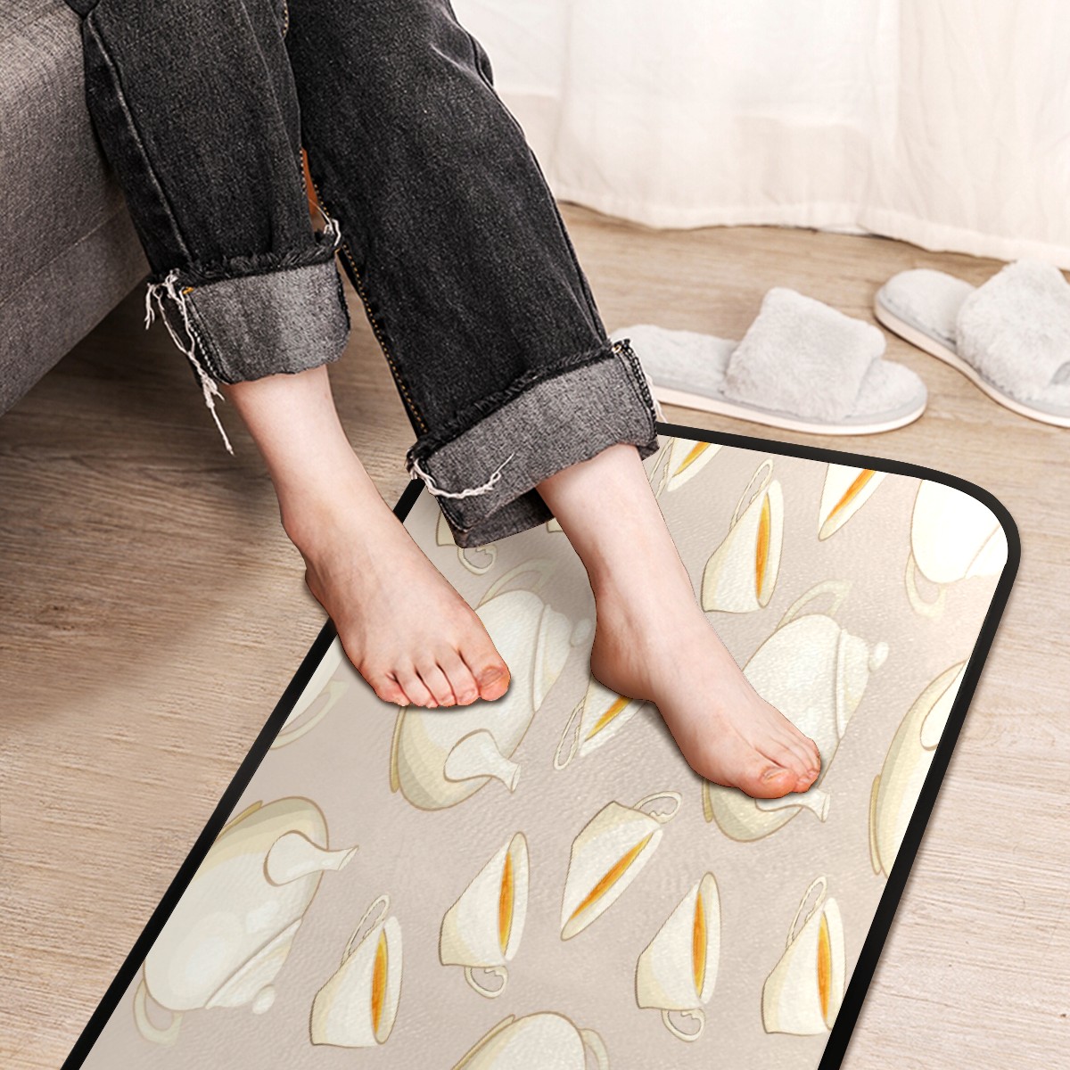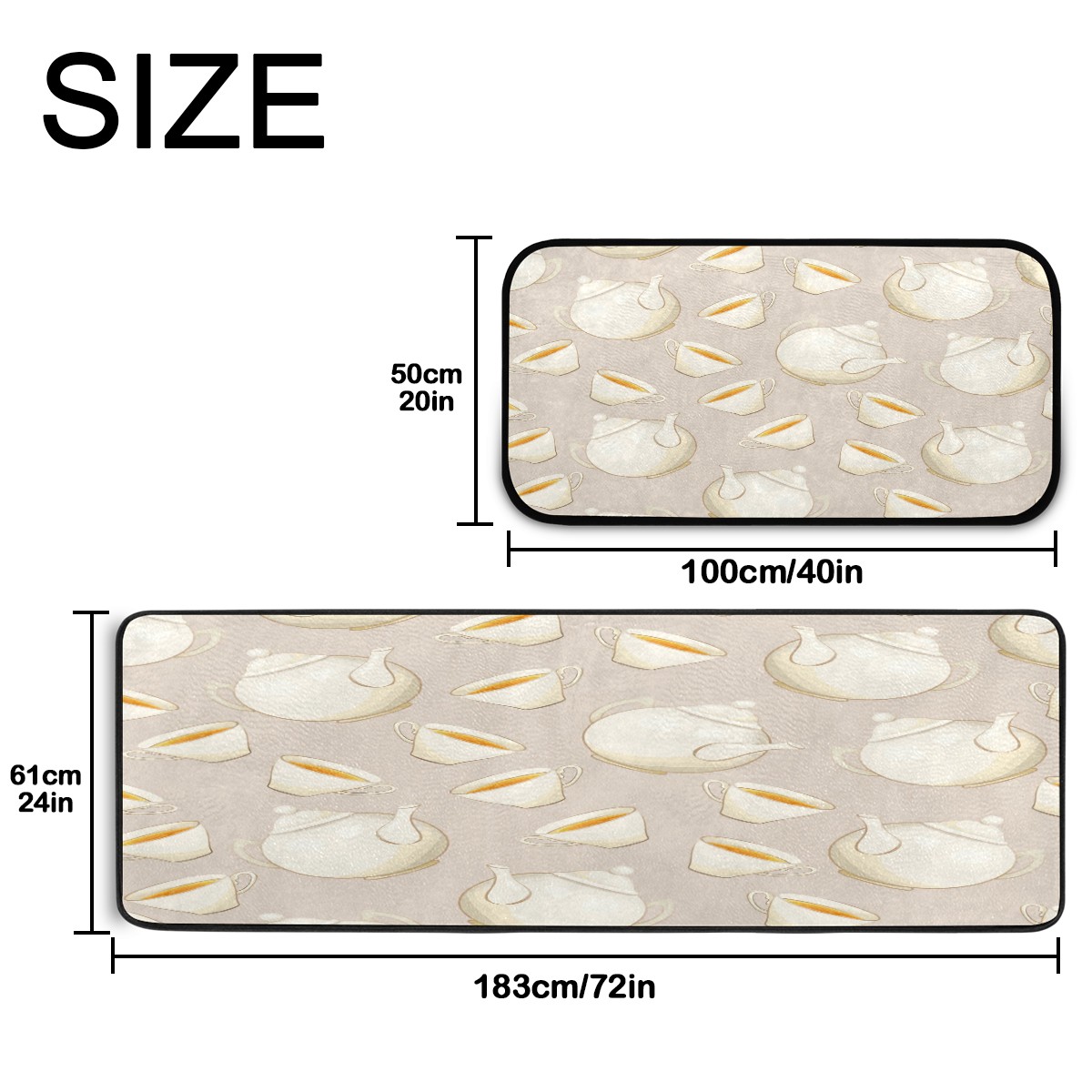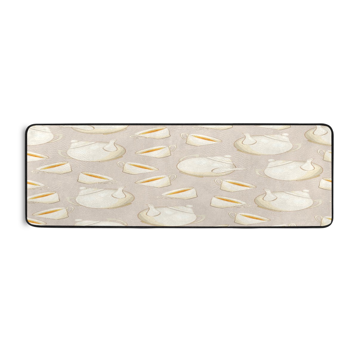 Kitchen Rugs Runner Porcelain Teapot Tea Cup Pattern Comfort Floor Mat Bath Mats Bed Desk Bathroom Area Rug Long Doormat Carpet Home Hotel