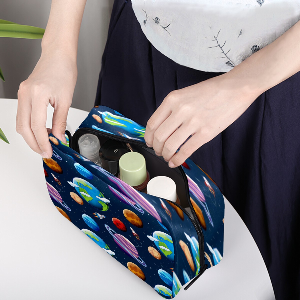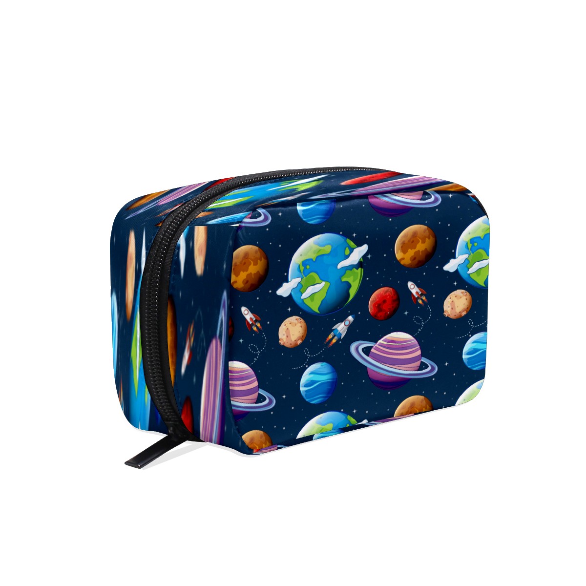 Cosmetic Bag for Women Girls Trave Makeup Bag Toiletry Case Pouch Accessories Organizer Galaxy Spaceshio Planet Earth Rocket Pattern