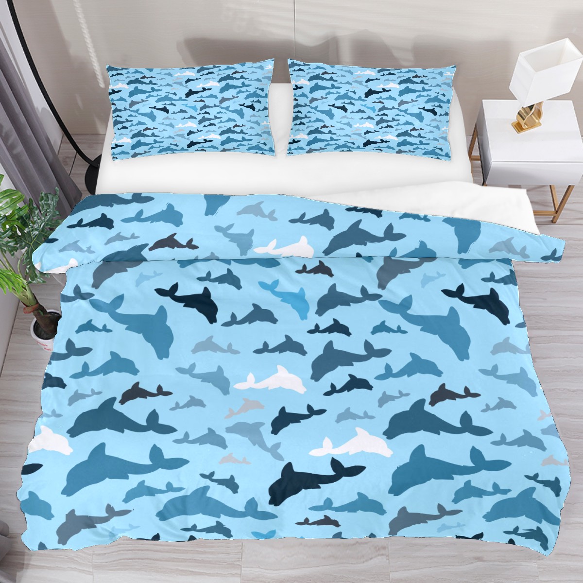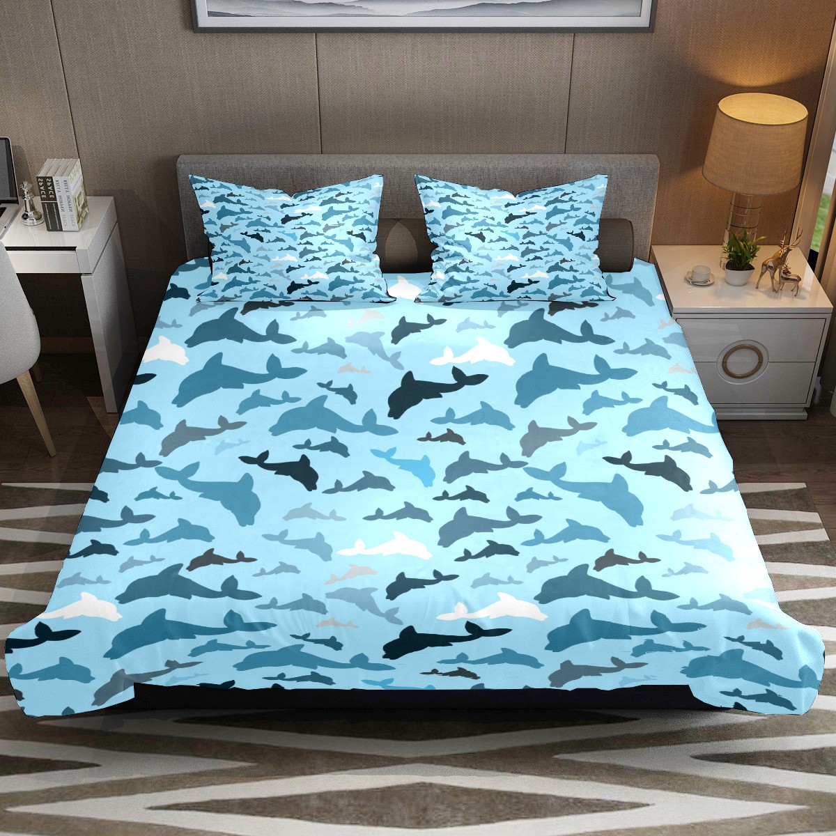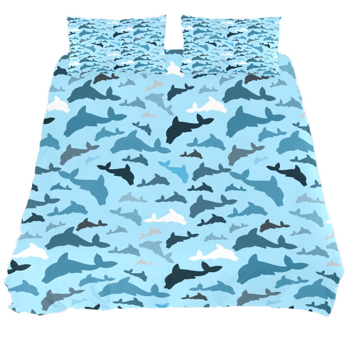 Duvet Cover Twin Ocean Sealife Blue Dolphins 3pcs Bedding Duvet Cover Set Modern Quilt Cover Microfiber Comforter Cover with Button Closure with 2 Pillow Cases 1 Duvet Cover