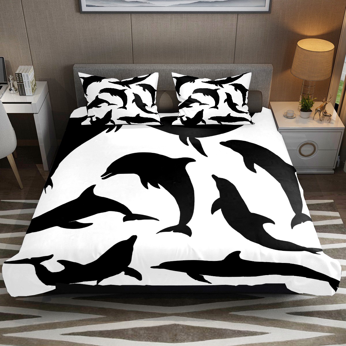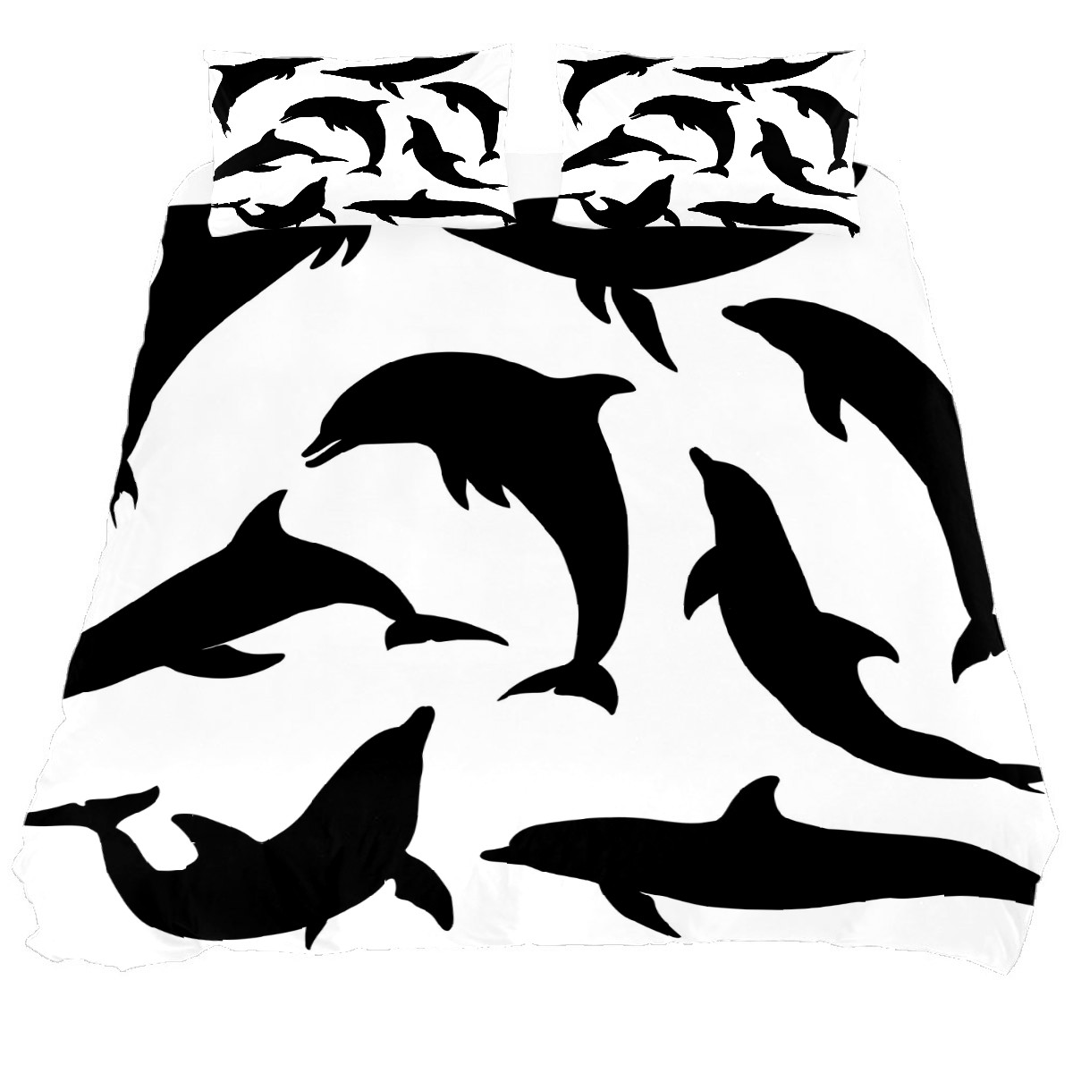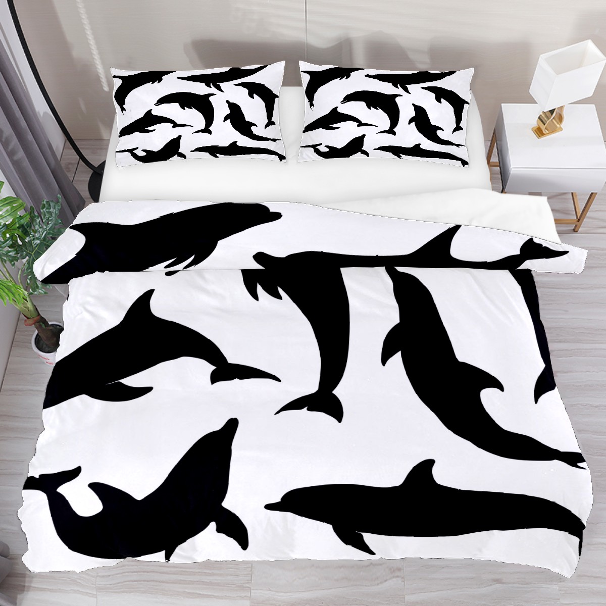 Duvet Cover Twin Ocean Sealife Black Dolphins 3pcs Bedding Duvet Cover Set Modern Quilt Cover Microfiber Comforter Cover with Button Closure with 2 Pillow Cases 1 Duvet Cover