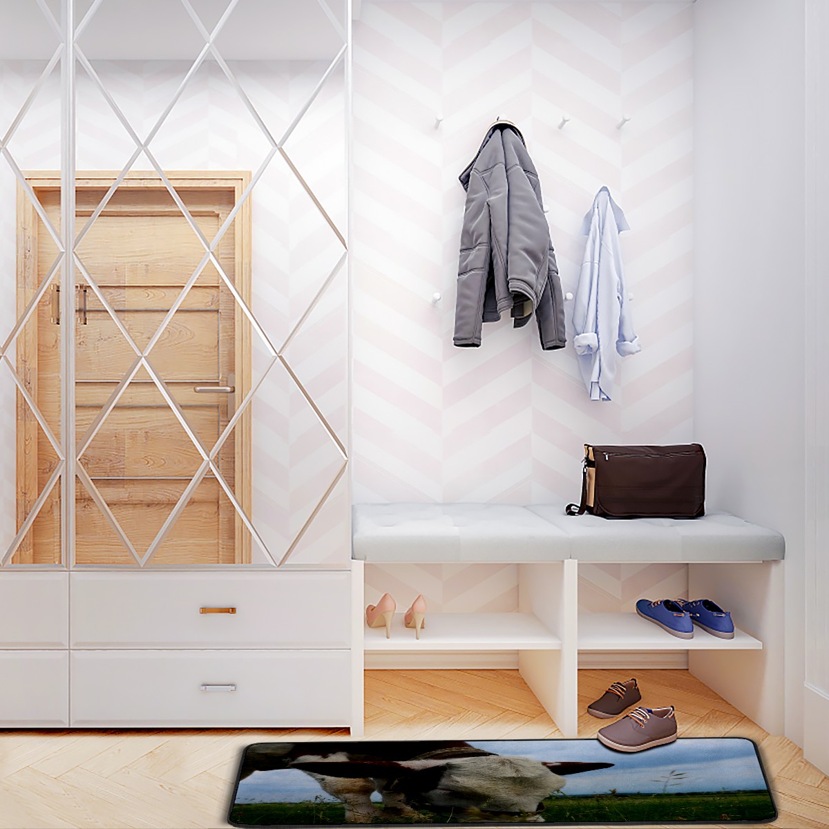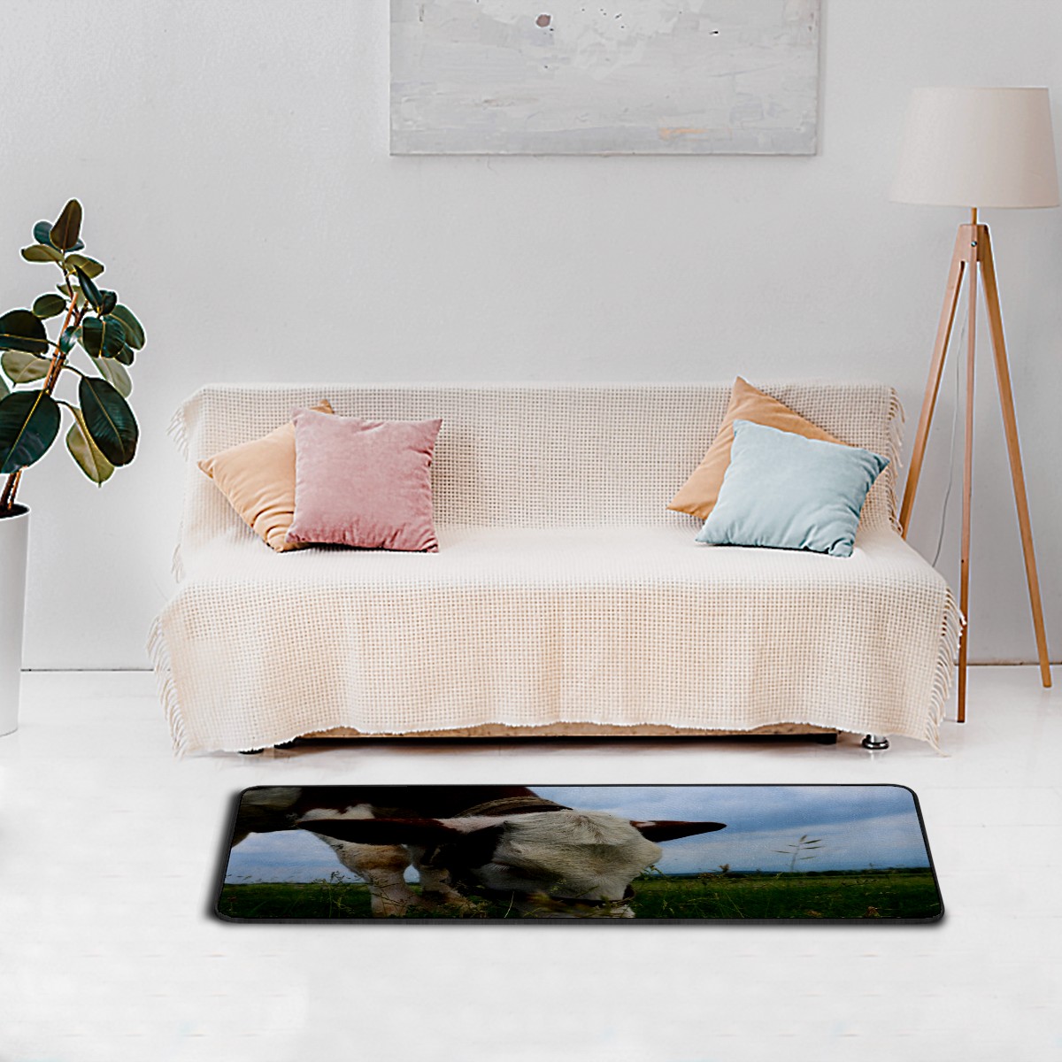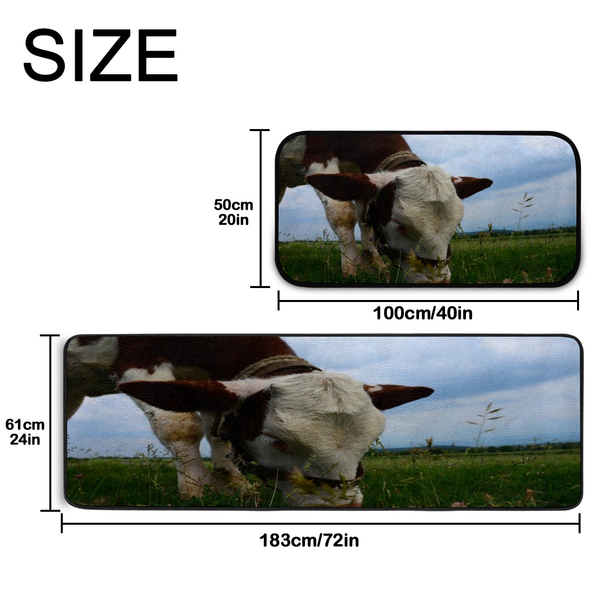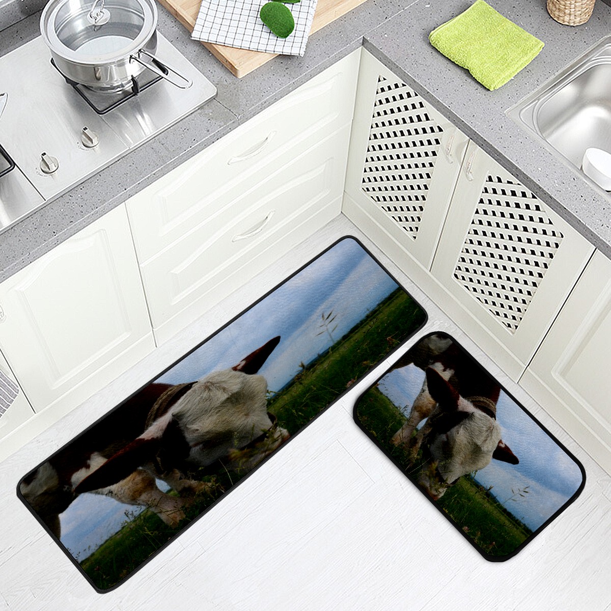 Kitchen Rugs Runner Mammal Cow Eating Grass Meadow Comfort Floor Mat Bath Mats Bed Desk Bathroom Area Rug Long Doormat Carpet Home Hotel