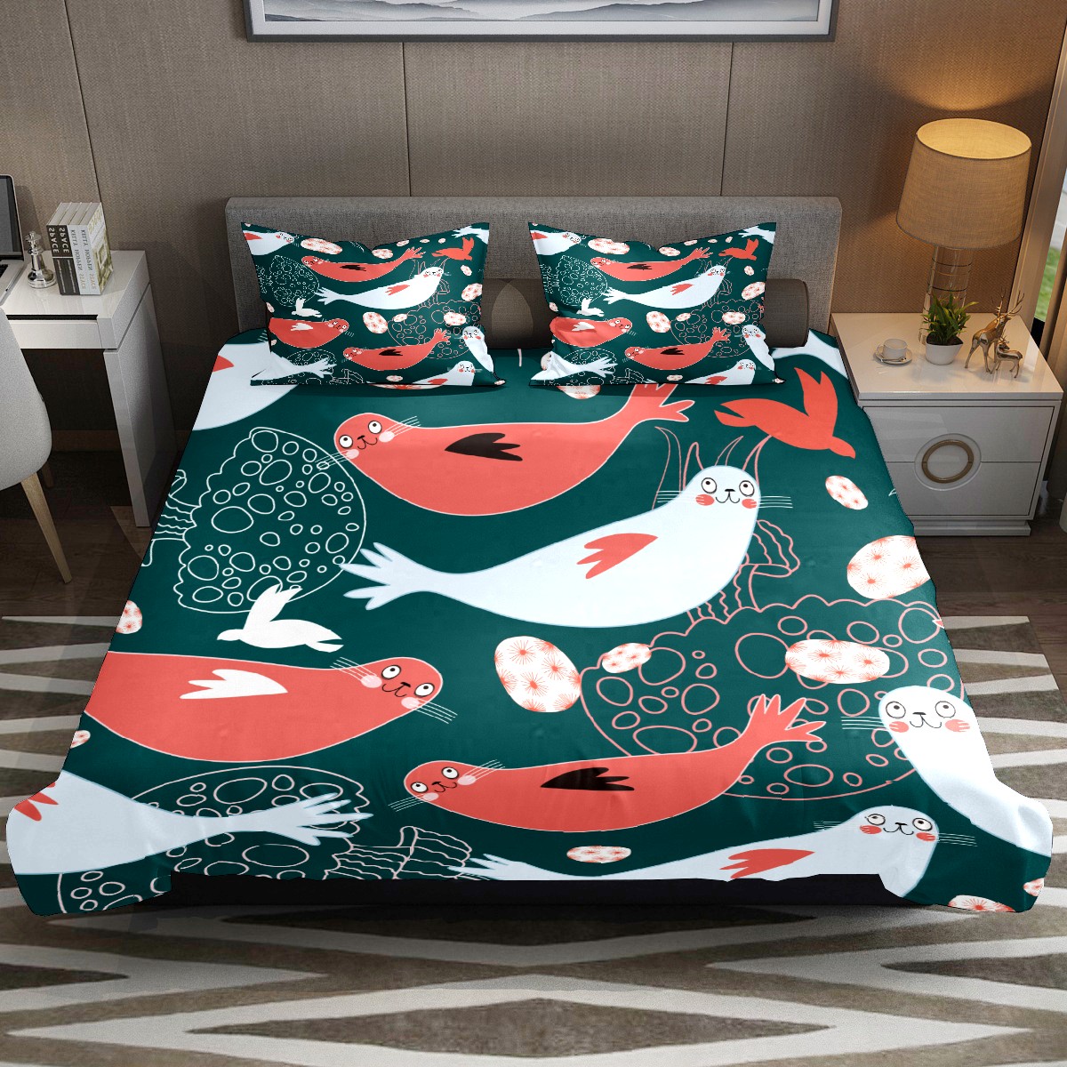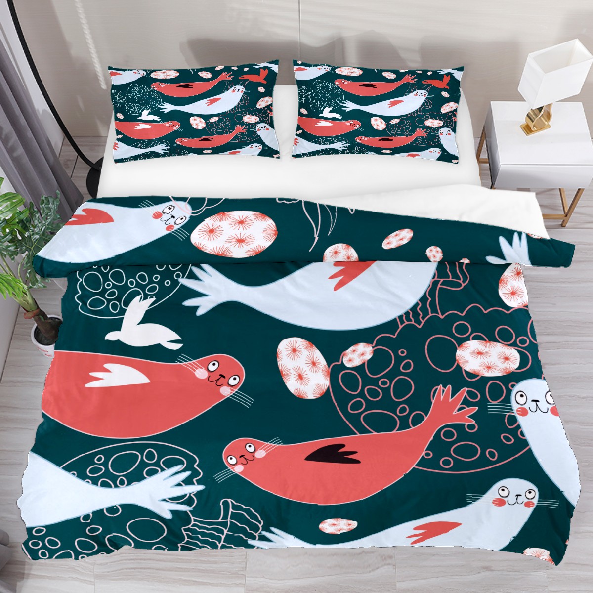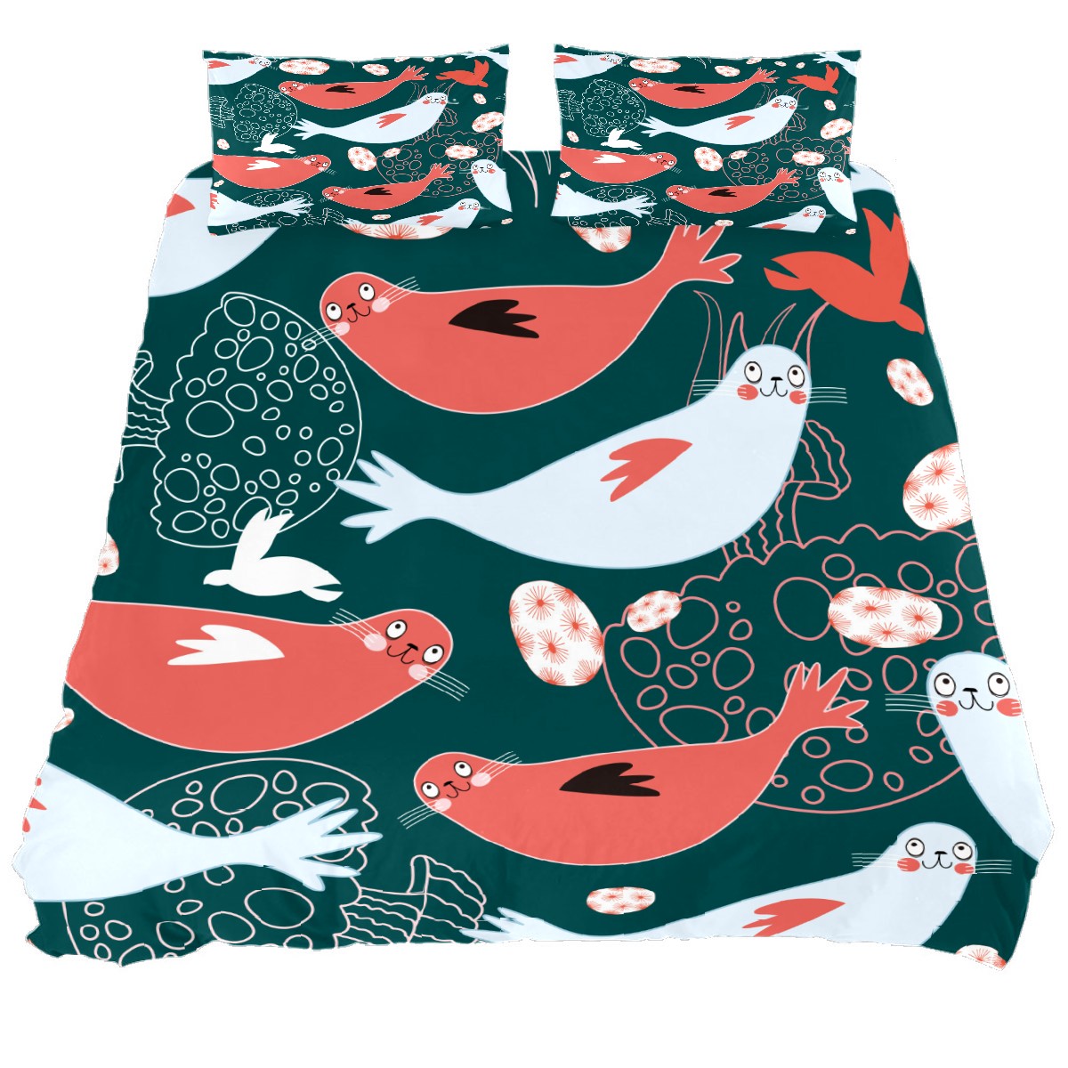 Duvet Cover Twin Ocean Sea Lion Sealife 3pcs Bedding Duvet Cover Set Modern Quilt Cover Microfiber Comforter Cover with Button Closure with 2 Pillow Cases 1 Duvet Cover